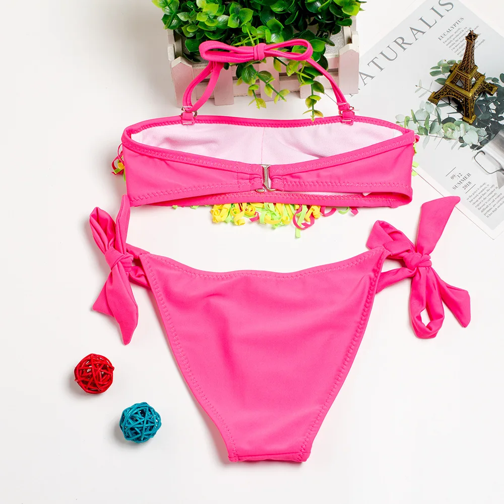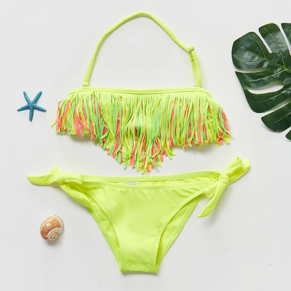 От 5 до 16 лет купальник с кисточками для девочек-подростков, детский купальник с кисточками, комплекты бикини, Infantil-ST9016