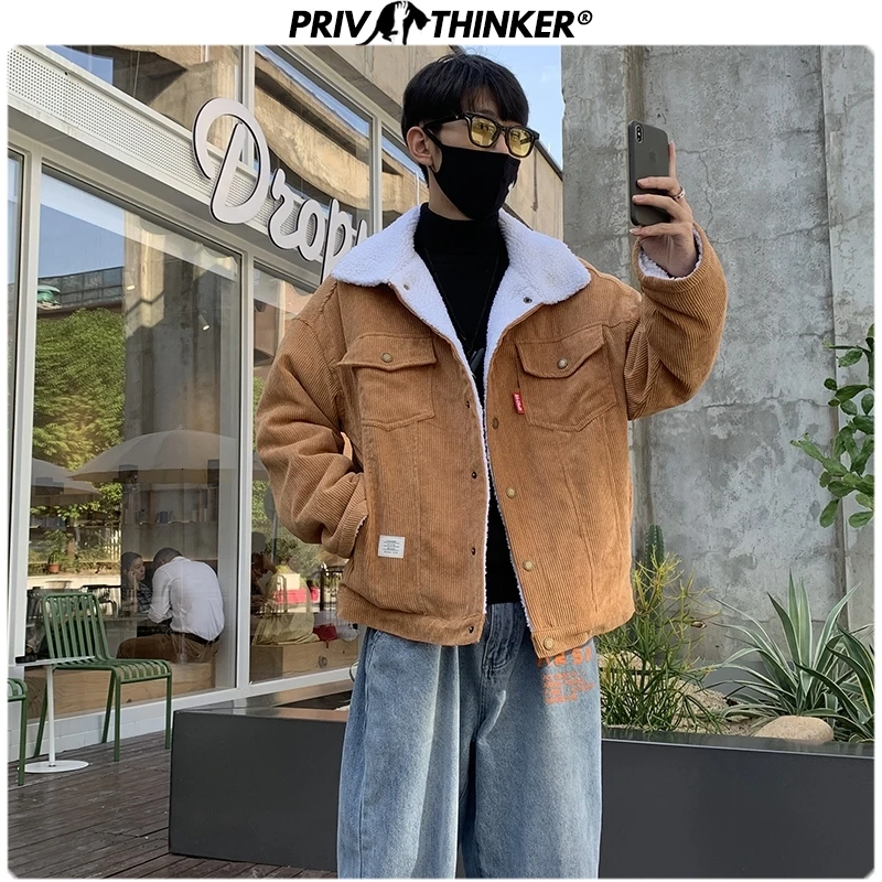 Мужская Вельветовая куртка Privathinker, утепленная, яркая, в стиле хип-хоп, повседневная, Осень-зима 2020