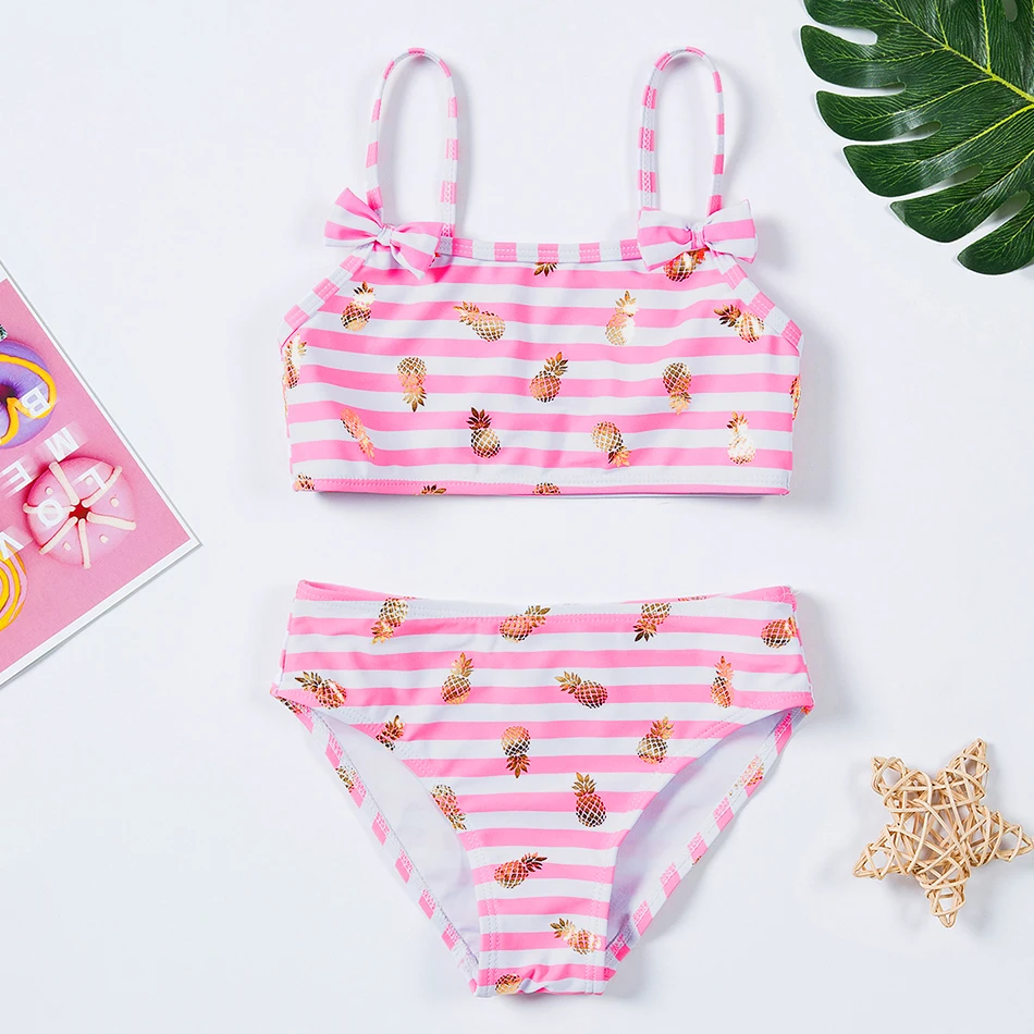 Купальник для девочек, Раздельный купальник в виде ананаса, танкини для подростков, От 1 до 14 лет