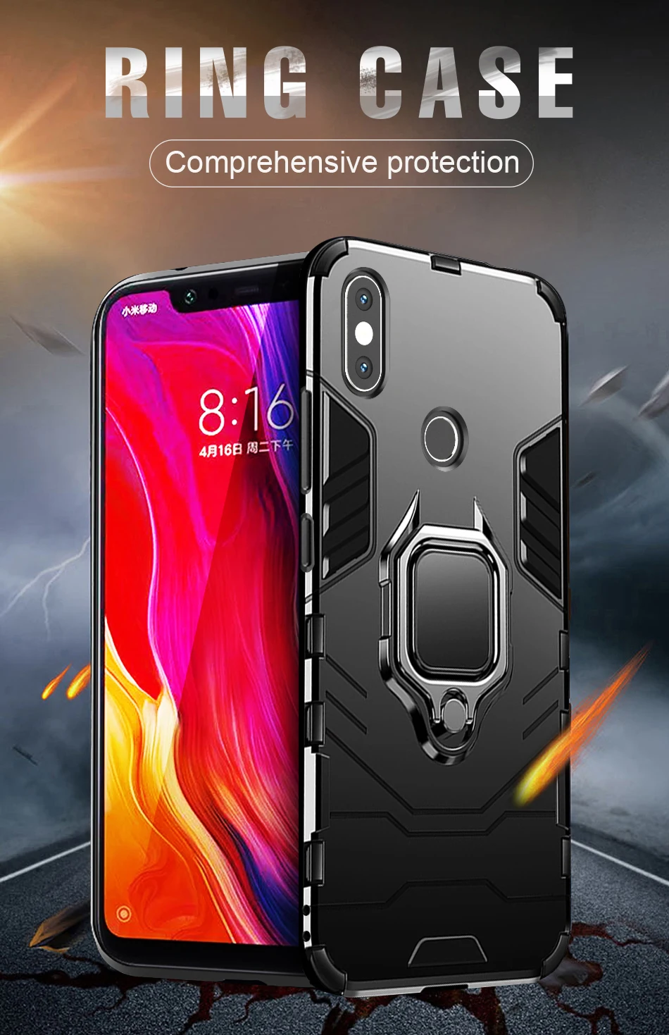 Противоударный армированный чехол для Xiaomi Mi8, Mi 8, силиконовый чехол для Xiaomi Mi 8 SE, чехол с автомобильным кольцом