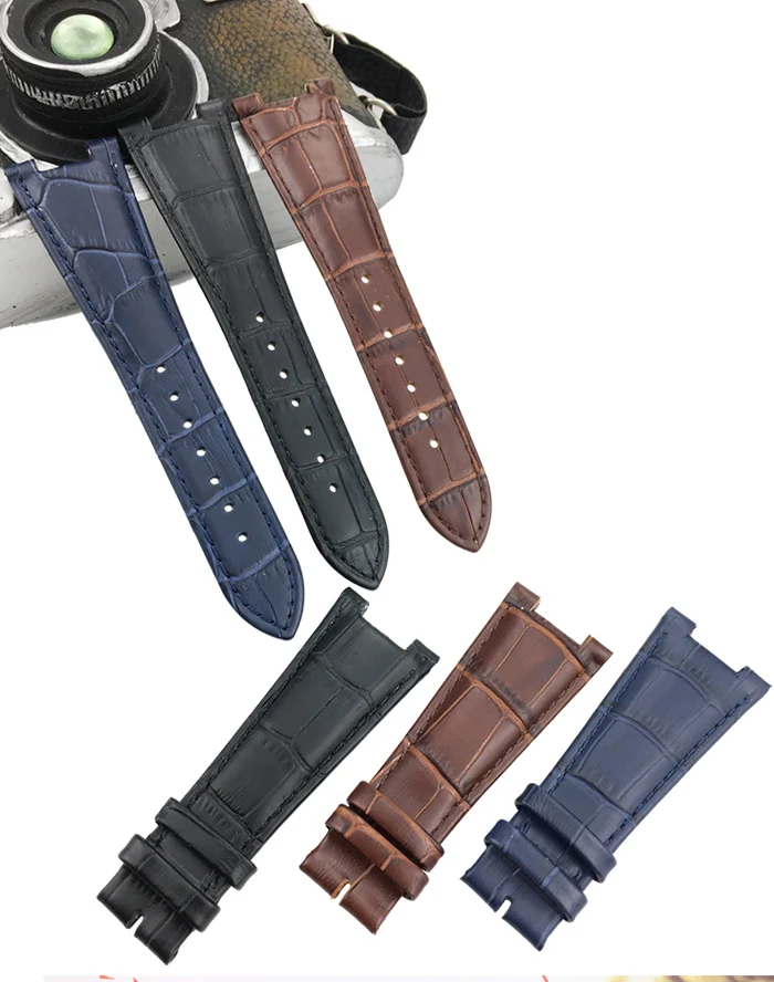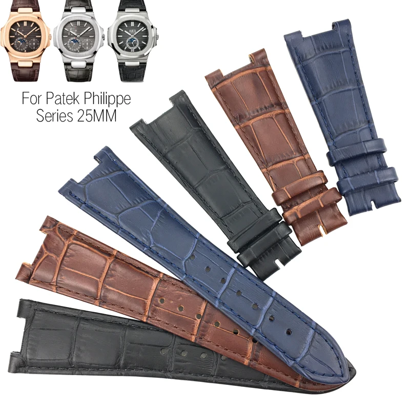 Ремешок для часов из воловьей кожи, 25 мм, черный, синий, коричневый, со складной пряжкой, кожаный ремешок для часов PATEK PHILIPPK Series