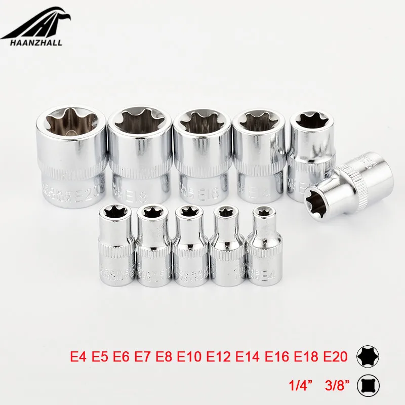 Комплект торцевых головок Torx Star, головки E4, E5, E6, E7, E8, E10, E12, E14, E16, E18, E20, 14 дюйма, для ремонта автомобиля