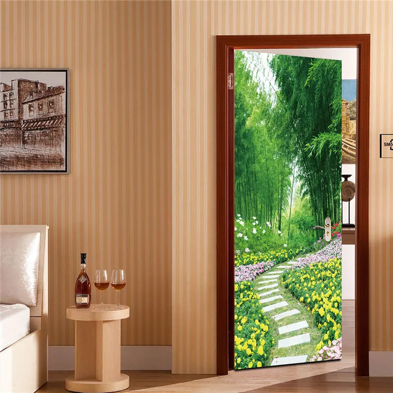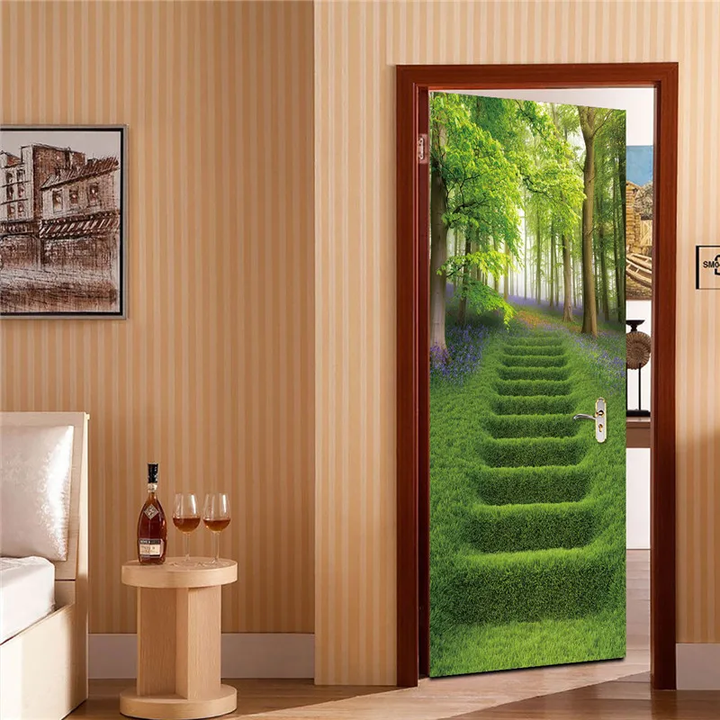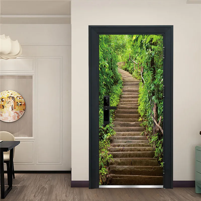 Лестница узор обои для двери деревянная обновленная самоклеящаяся дверная наклейка разных размеров домашний Декор настенный постер настенная роспись