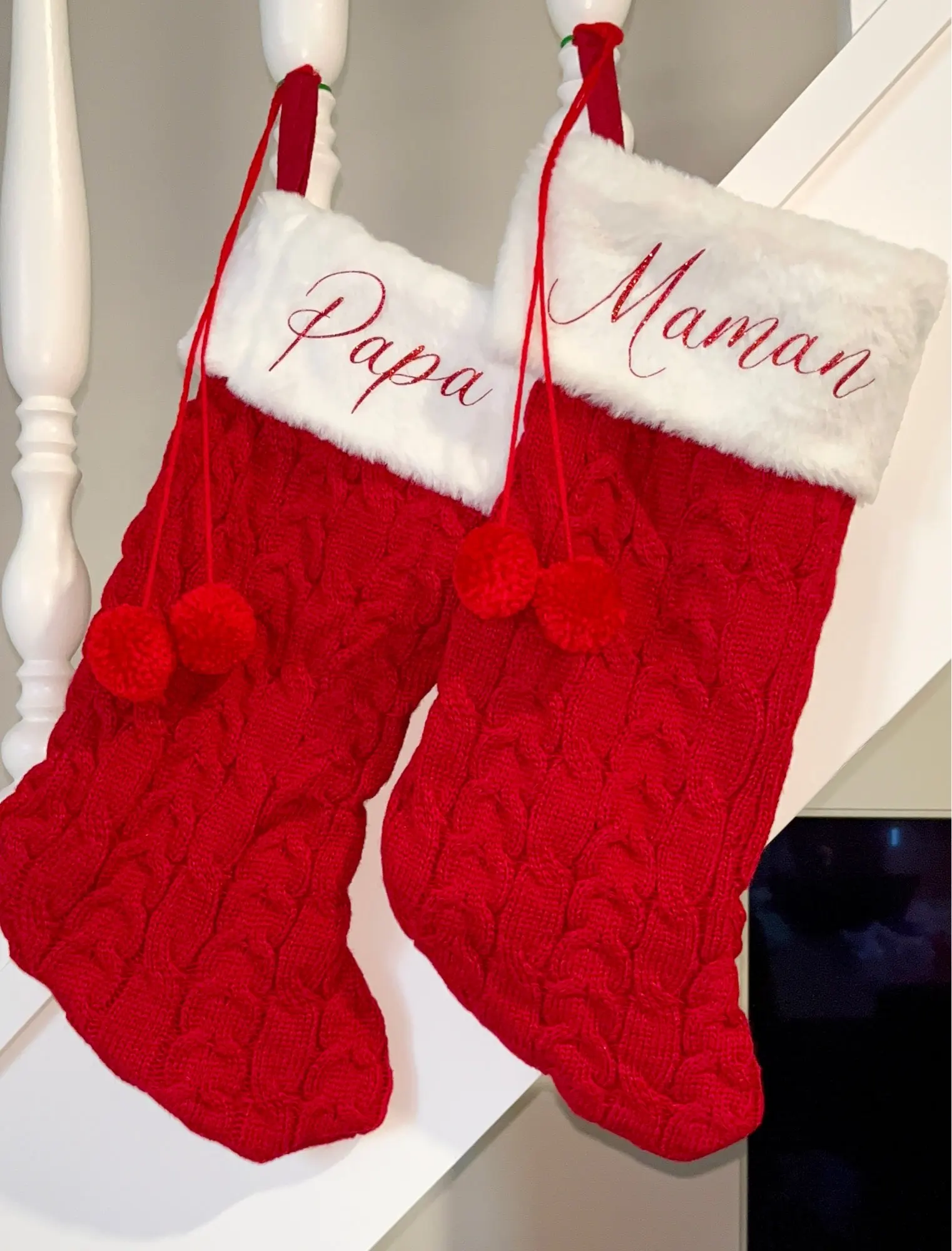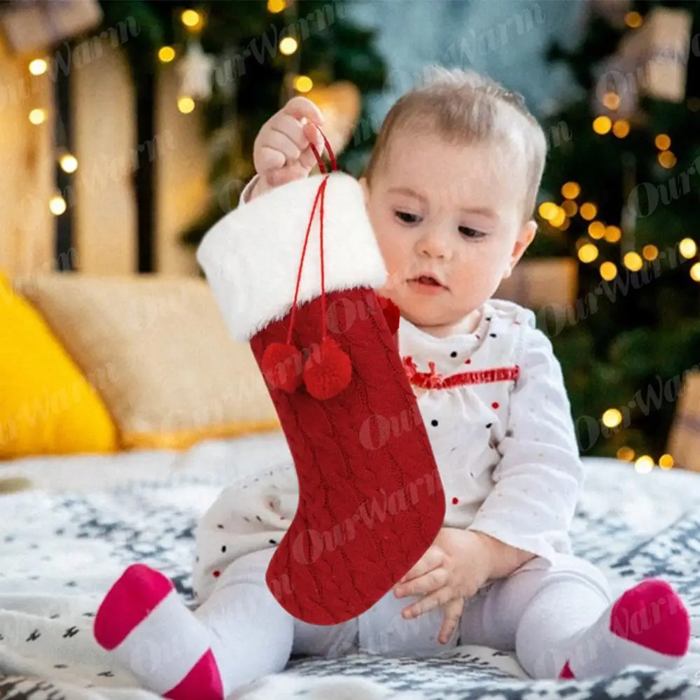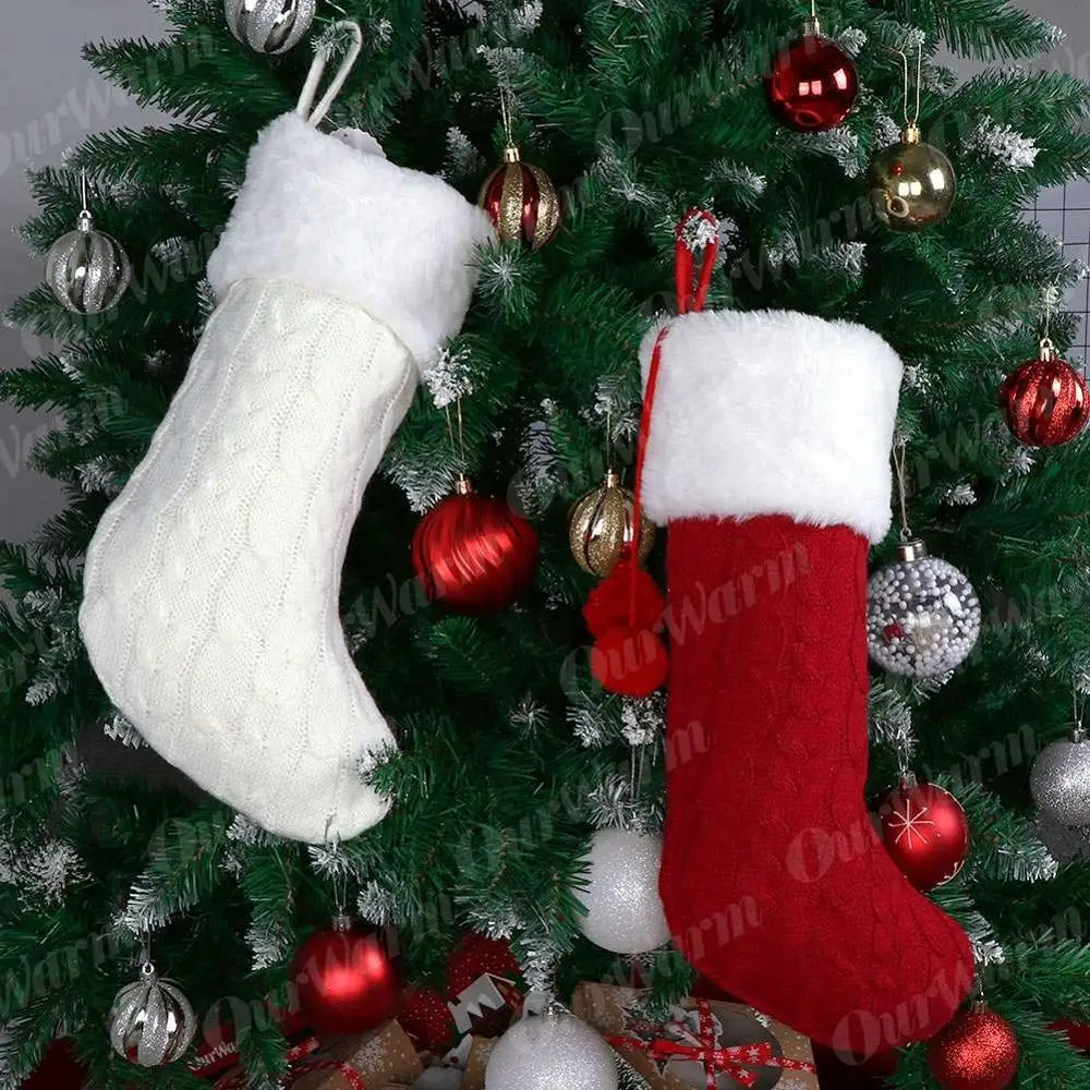 OurWarm рождественские вязаные чулки, Подарочная сумка для конфет, каминная елка, висячие украшения, Рождественское украшение для дома, красныйслоновая кость