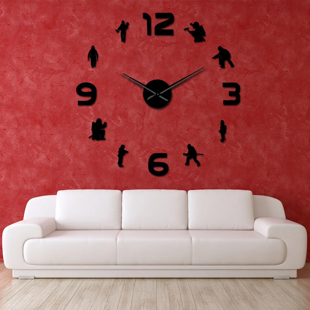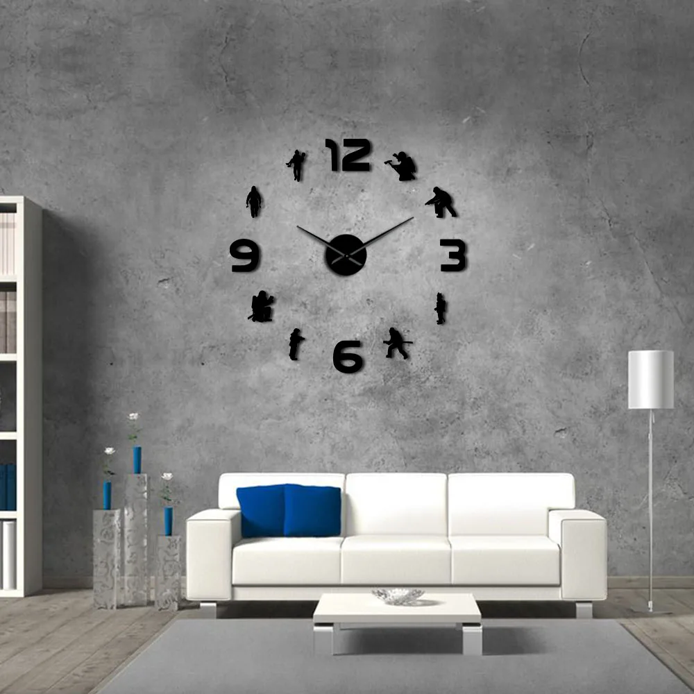 Пожарные пожарные солдаты DIY большие настенные часы с большими руками, пожарная табличка отдела, безрамные тихие настенные часы, пожарный арт подарок