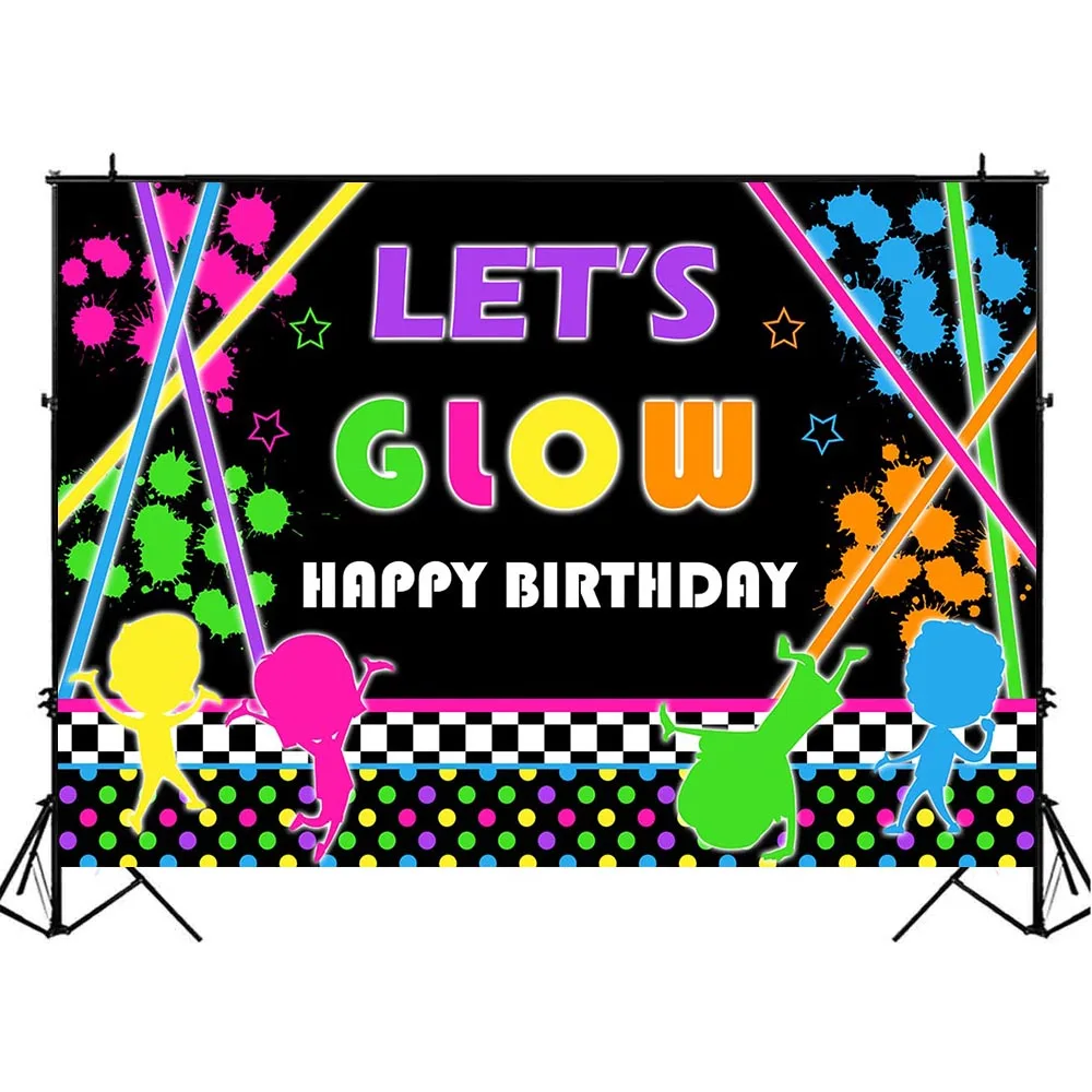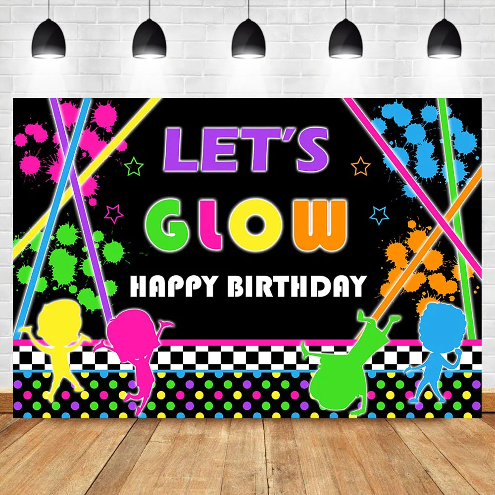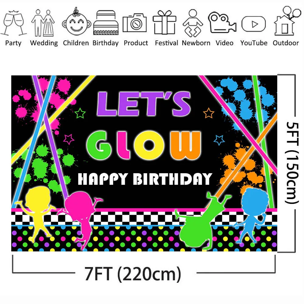 Mocsicka Let's Glow Backdrop светится в темноте День Рождения фотография фон неоновый брызг Photo Studio реквизит для фотосессии