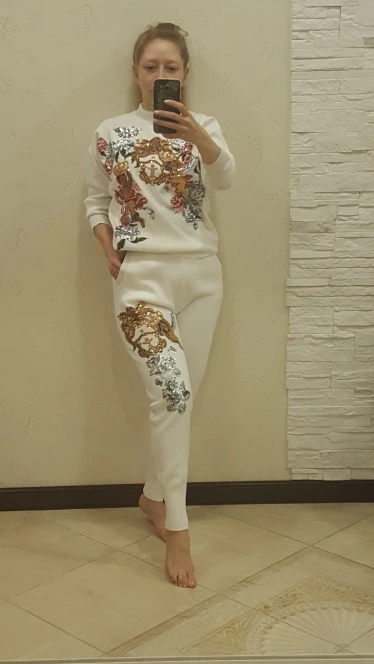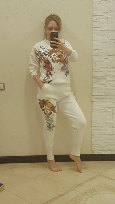Костюм красивый, очень его ждала. НО! К сожалению, разочаровалась: специально брала на размер больше, но штаны короткие, просвечивают и ткань просто фантастически подчеркивает все недостатки фигуры... К верхней части нареканий нет. В общем, на 4 тыс. костюм вообще не тянет.