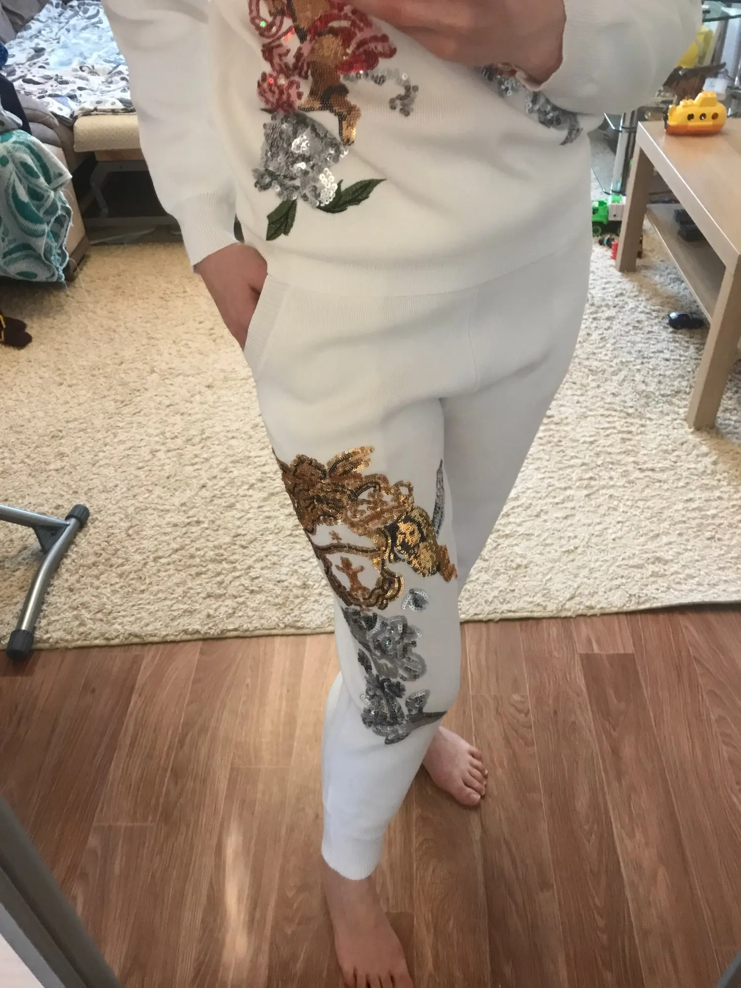 ОЧЕНЬ красивый костюм,качество и все соответствует заявленному продавцом. Единственное,может взяла бы больше на размер,еще думала взять больше l,но передумала и попросила продавца положить m. Продавец хороший,внимательный,на опросы отвечал,но я сама сделала свой выбор,муж сказал,что больше не нужно было,размер точный,сын прилипился фотографироваться с нарядной мамой)) Так-то покупкой я довольна. Одевать только с бежевым бесшовным бельём,вроде не просвечивает ,но все же как будто тень дает. Шло 3 недели. Стирка явном ручная,выглядит ярко,дорого-богато,но с тем же стильно. Все блестяшки уместны,пришиты идеально,не придраться. На рост 160 86/66/92 размер M сидит вот так,вроде как надо.