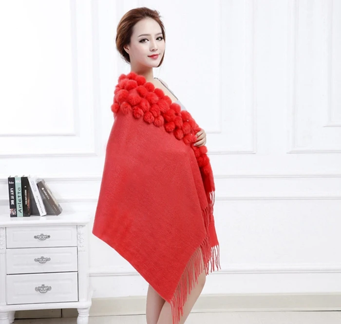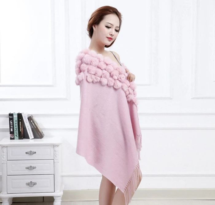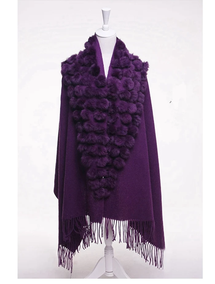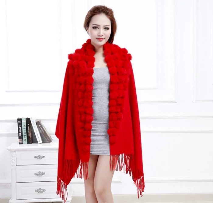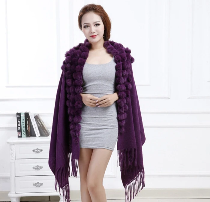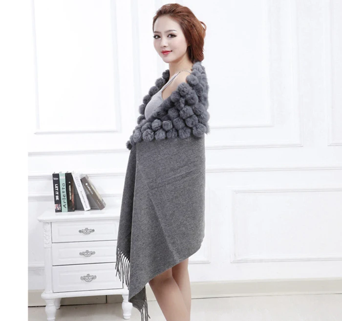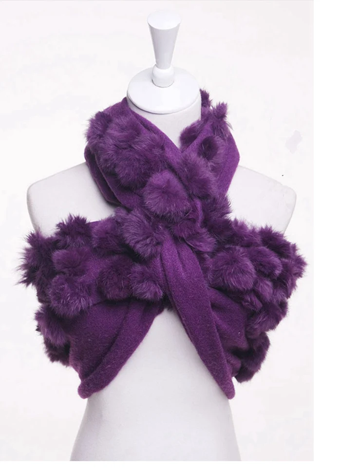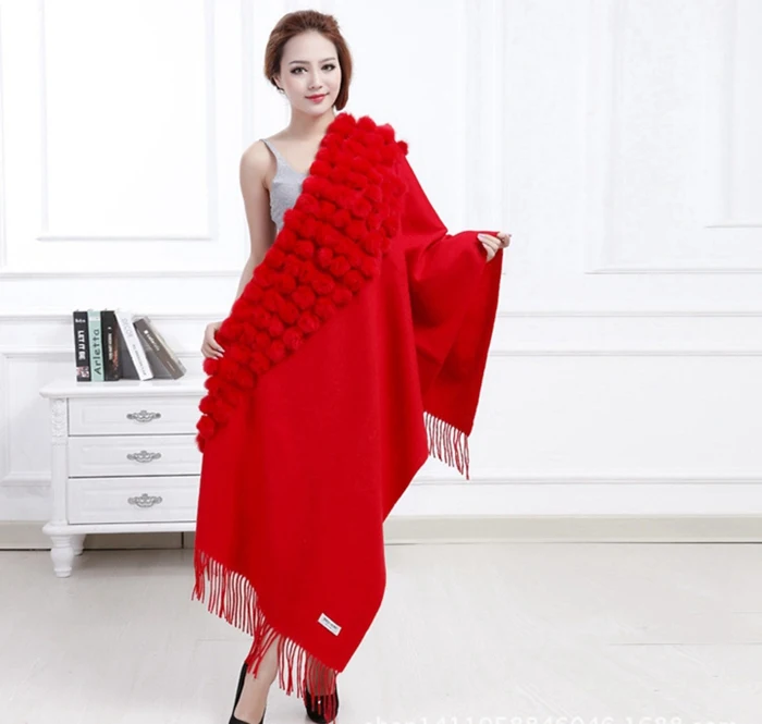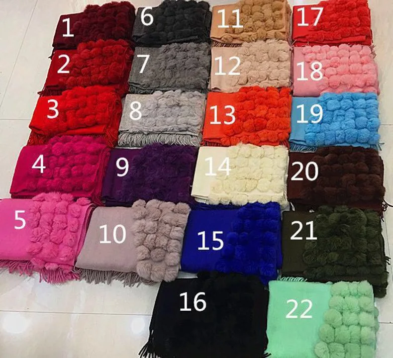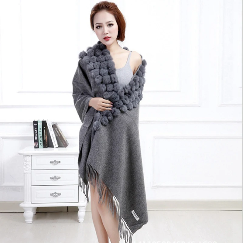 Зимний женский шарф из 100% шерсти, шали из натурального меха, новинка черного цвета, кашемир, помпон из кроличьего меха, шаль, шарф, осенняя теплая накидка, глушитель