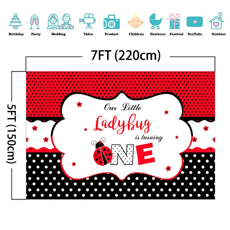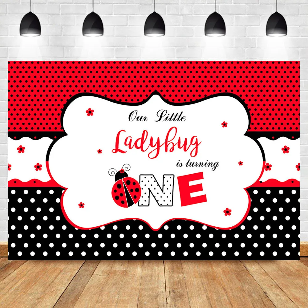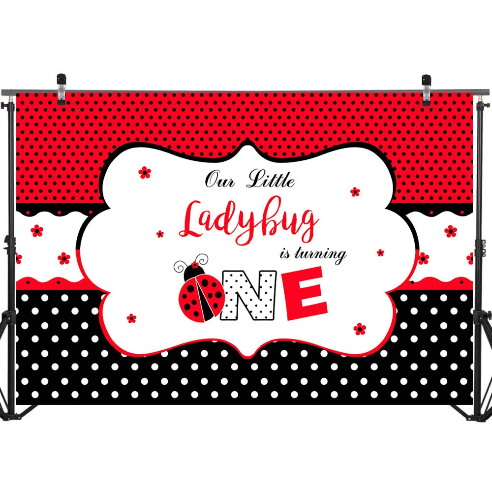 MOCSICKA фон для первого дня рождения с милой божьей коровкой на 1-й День рождения фон для фотосъемки черные красные точки фон для фотосъемки на день рождения