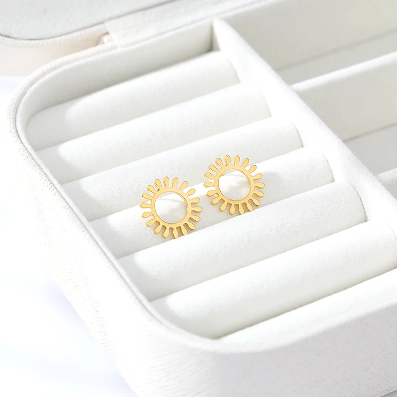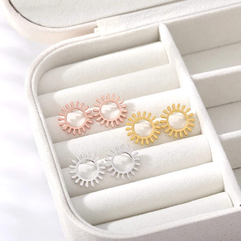Женские серьги с дизайном солнце, серьги-гвоздики из нержавеющей стали цвета розового золота, ювелирные изделия, рождественские аксессуары
