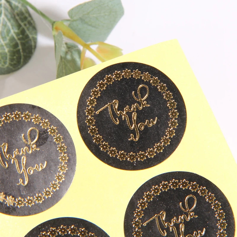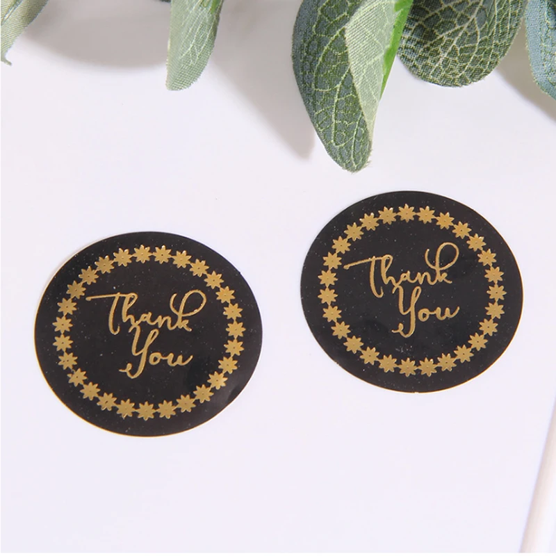 120 шт.лот круглые черные золотые кольца с надписью Thank you Star Наклейки для скрапбукинга для упаковки канцелярские наклейки