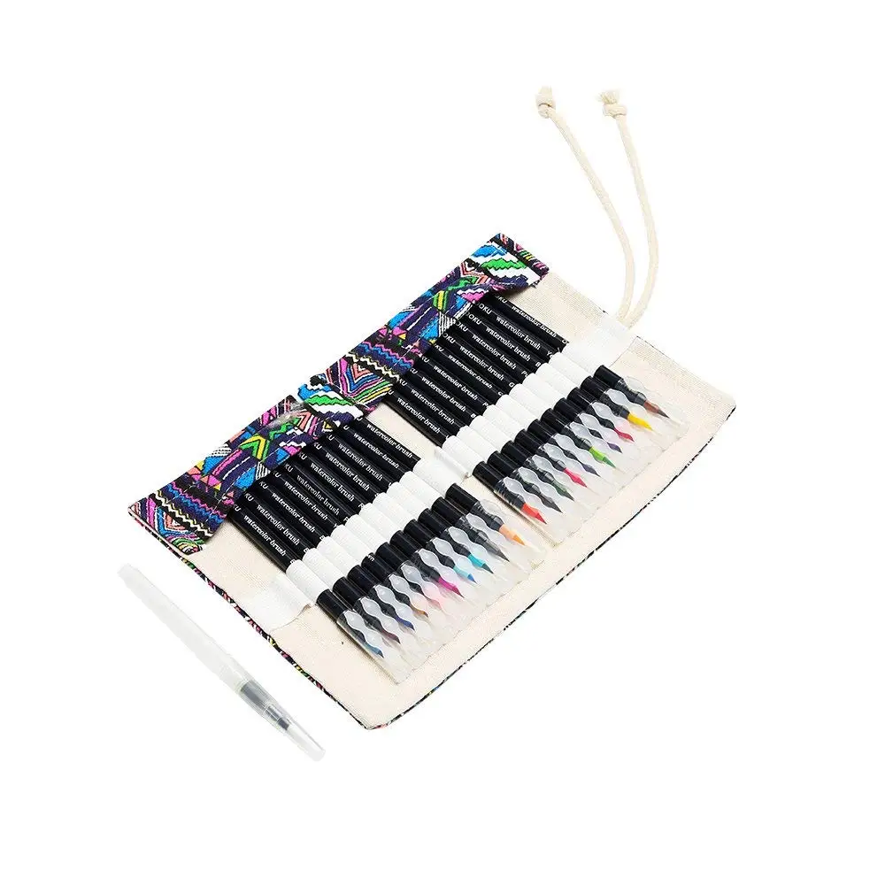 20 шт. Предварительно заполненные водные цветные кисти, маркеры, настоящие кисти, наконечники для акварели, бонус, холщовая обертка и кисть для воды, ручка -Набор кистей для акварели-20 кистей для акварели с предварительным заполнением водой с бонусной парусиновой оберткой и 1 многоразовая кисть для воды