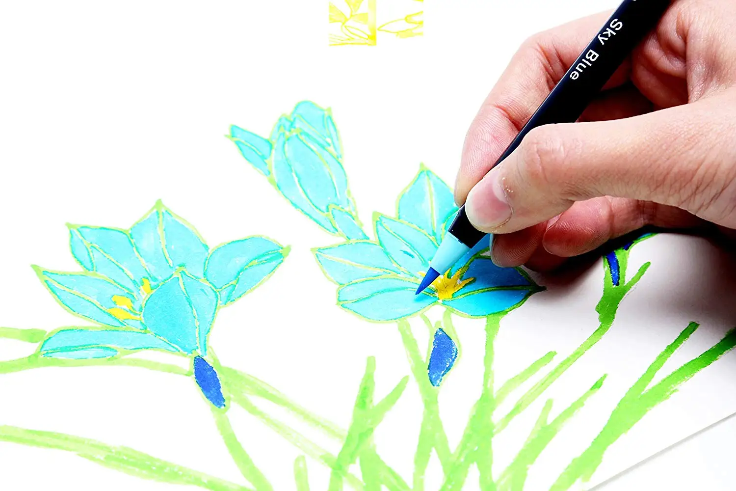 -Эти акварельные маркеры имеют настоящие наконечники кистей, которые обеспечивают Аутентичные, жидкие и мелкие мазки.