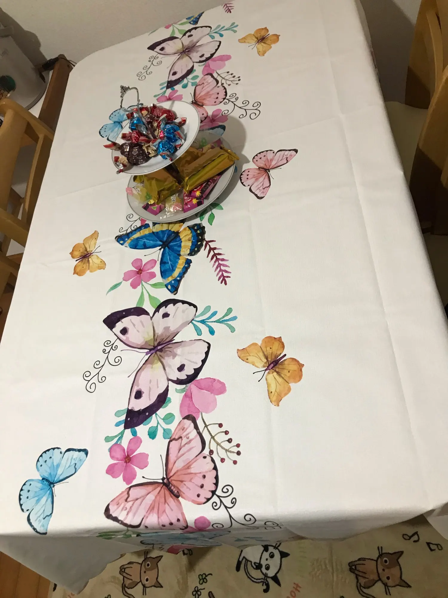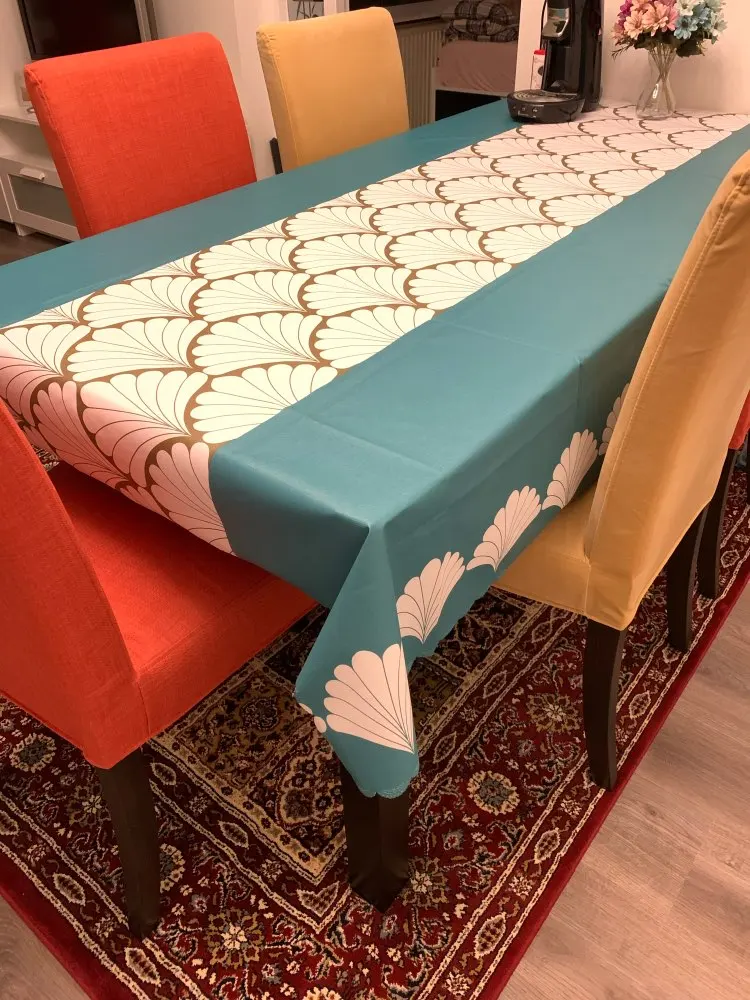 Скатерть красивая, но учтите, что это клеенка. на картинке свисает как ткань, это не так. считаю, что для клеенки это очень дорого.