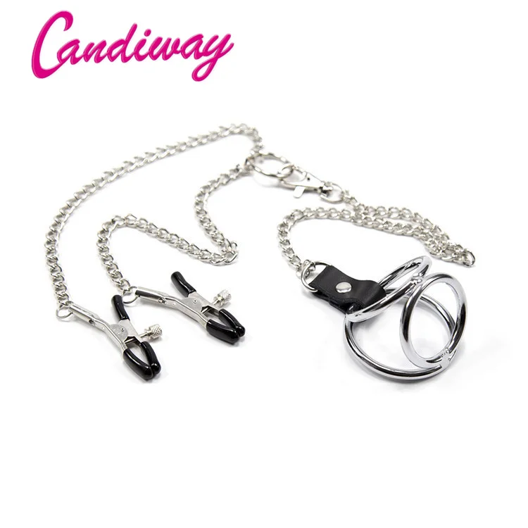 Candiway нержавеющая сталь металлическая цепь зажимы для сосков с кольцом для пениса взрослые SM игры ограничения экзотические аксессуары секс-игрушки для мужчин