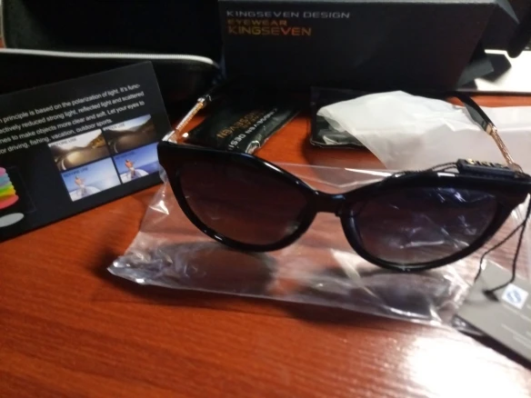 Очки очень понравились. Поляризация есть. Изображение не искажает. Стразы на месте. Упакованы были очень хорошо. Все пришло целое. Однозначно я ещё закажу себе в этом магазине очки.