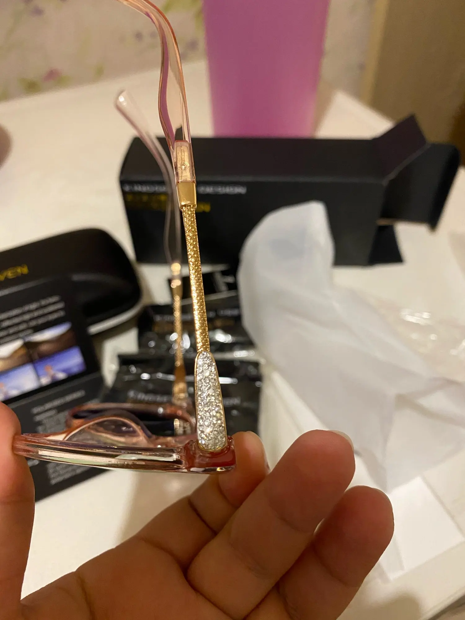 Очень хорошая пара очков, но искусственные драгоценности на дужках выглядят немного липкими. Хотел бы получить более чистую версию этих рамок. Кроме того, мне нравится. Упаковка тоже отличная!