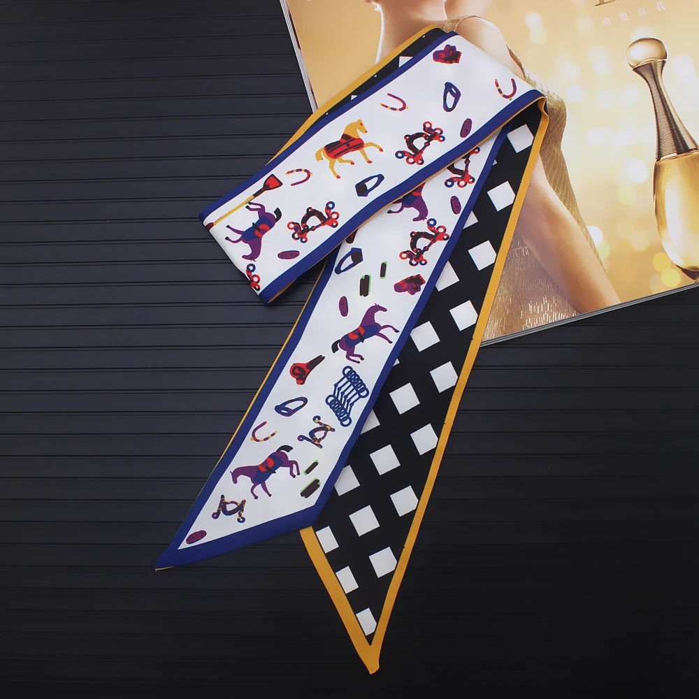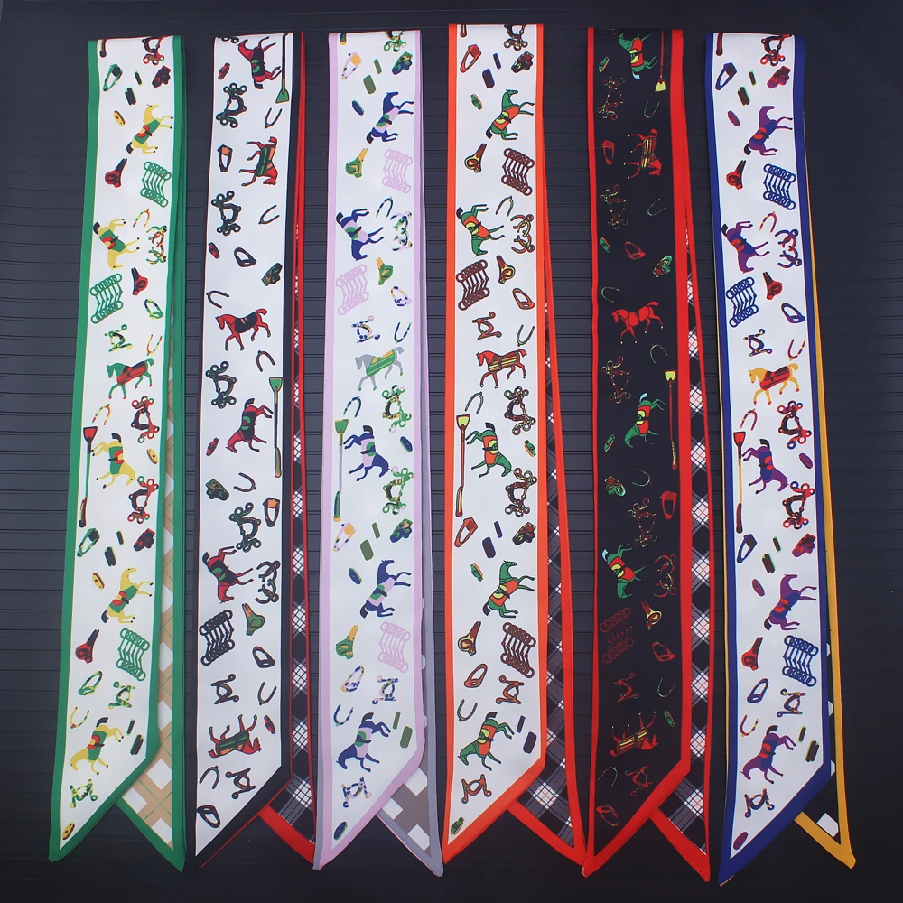 Женский узкий шарф в клетку Horse, шелковые шарфы, модный головной платок, роскошное Брендовое полотенце на запястье, повязка на голову, Прямая поставка