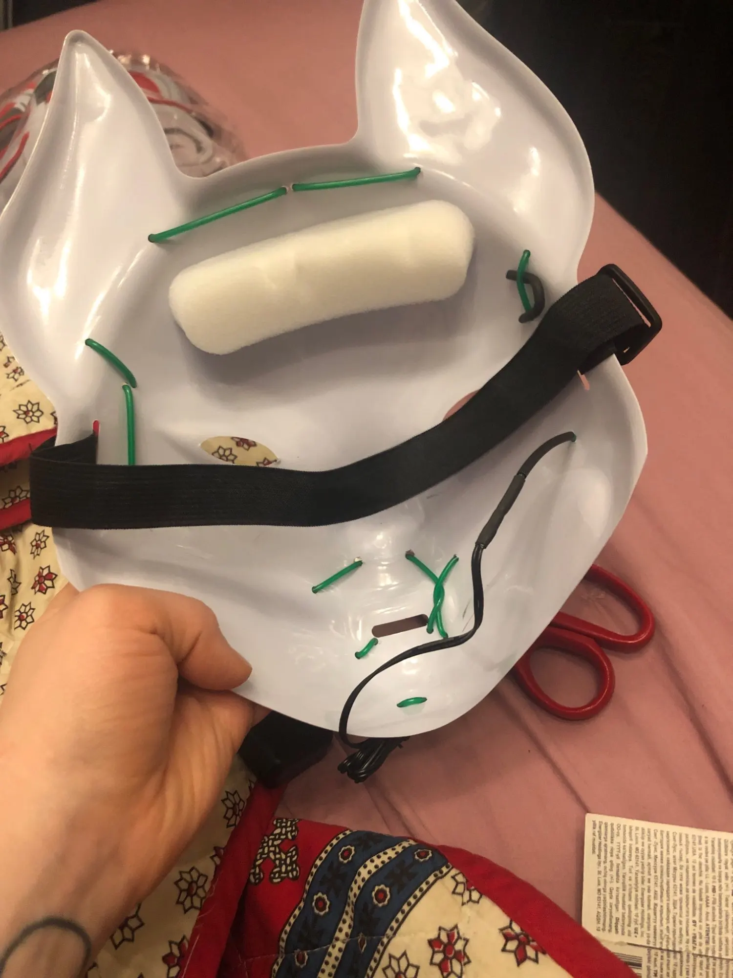 Я получил эту маску и сказал это так плохо, что я с ней доволен. При люминесцентном освещении он пищит и разрушит всю атмосферу маски, конечно, для маленького лица плюс кабеля, ужасно irytuje во время использования.