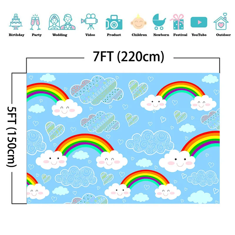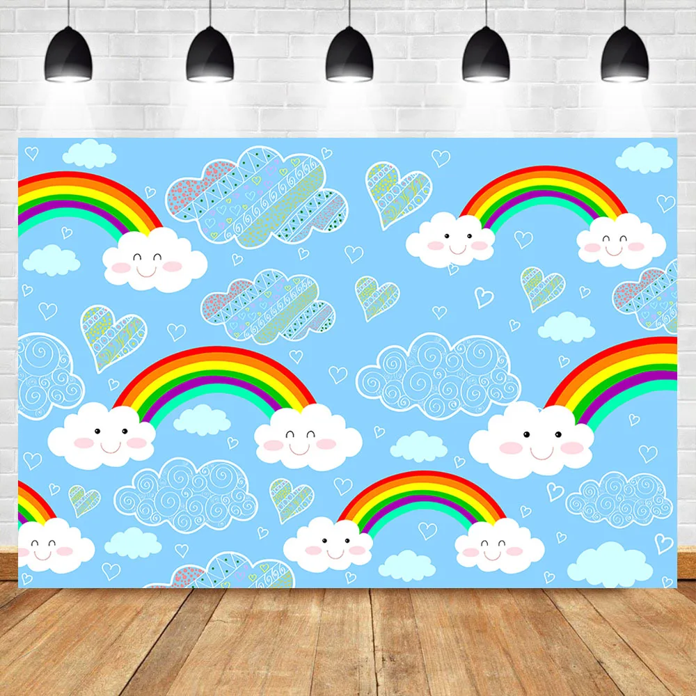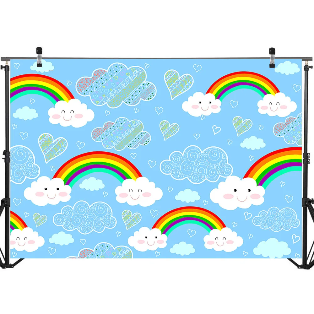 Фон для фотосъемки детей в день рождения с изображением милой радуги голубого неба и белых облаков для фотостудии