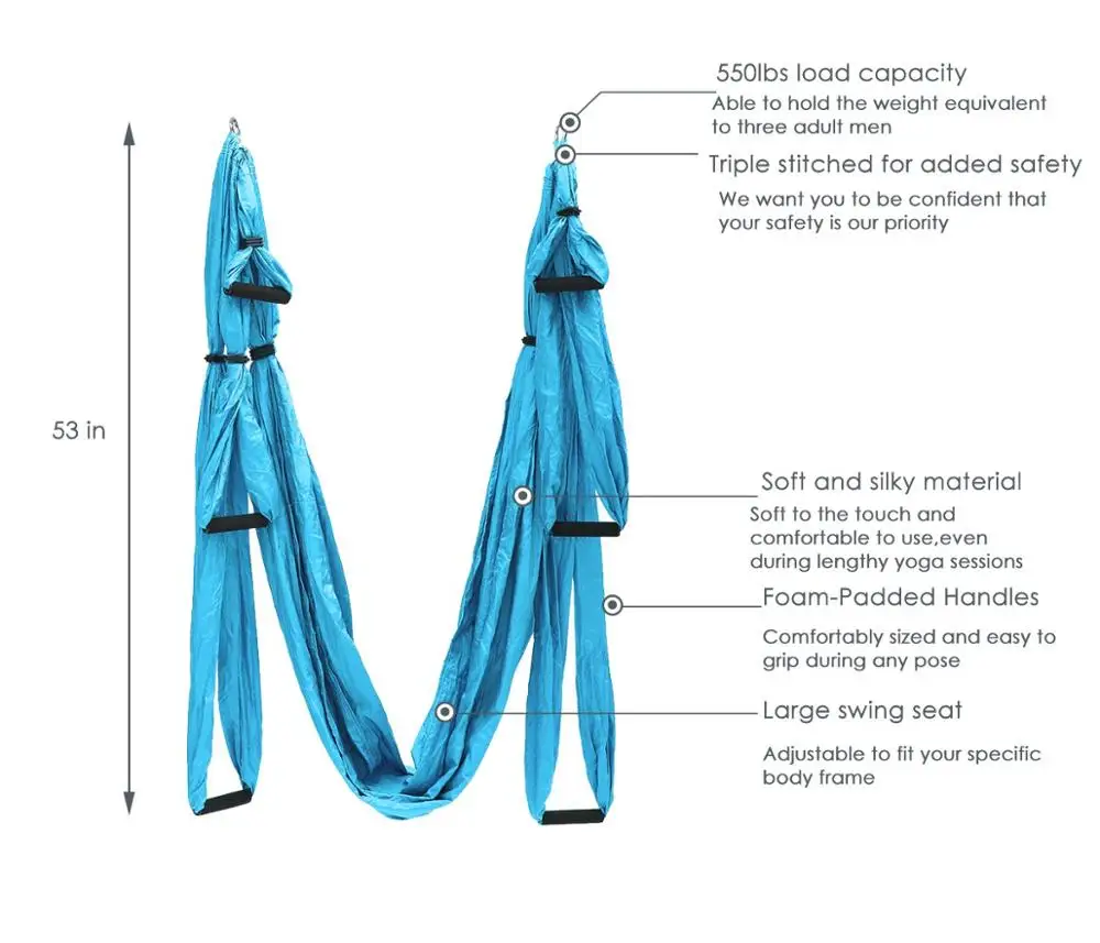 1. Необходимо закрепить прочную точку гамака для йоги, расстояние между приостанавливающей высотой и землей не должно превышать 15 см при подвешивании вверх дном, чтобы избежать случайных травм от падения.2. Перед использованием, пожалуйста, проверьте, свободен ли подвесной карабин, растягивающийся ремешок чрезмерно изнашивается.3. Не переносите кнопки или другие острые предметы, которые могут повредить гамак для йоги.4. Не огнестойкий тканевый продукт, пожалуйста, держите подальше от огня.5. Убедитесь, что поверхность вокруг гамака для йоги чистая и гладкая, избегайте выбора места с такими острыми твердыми предметами, как гравий и ветка.