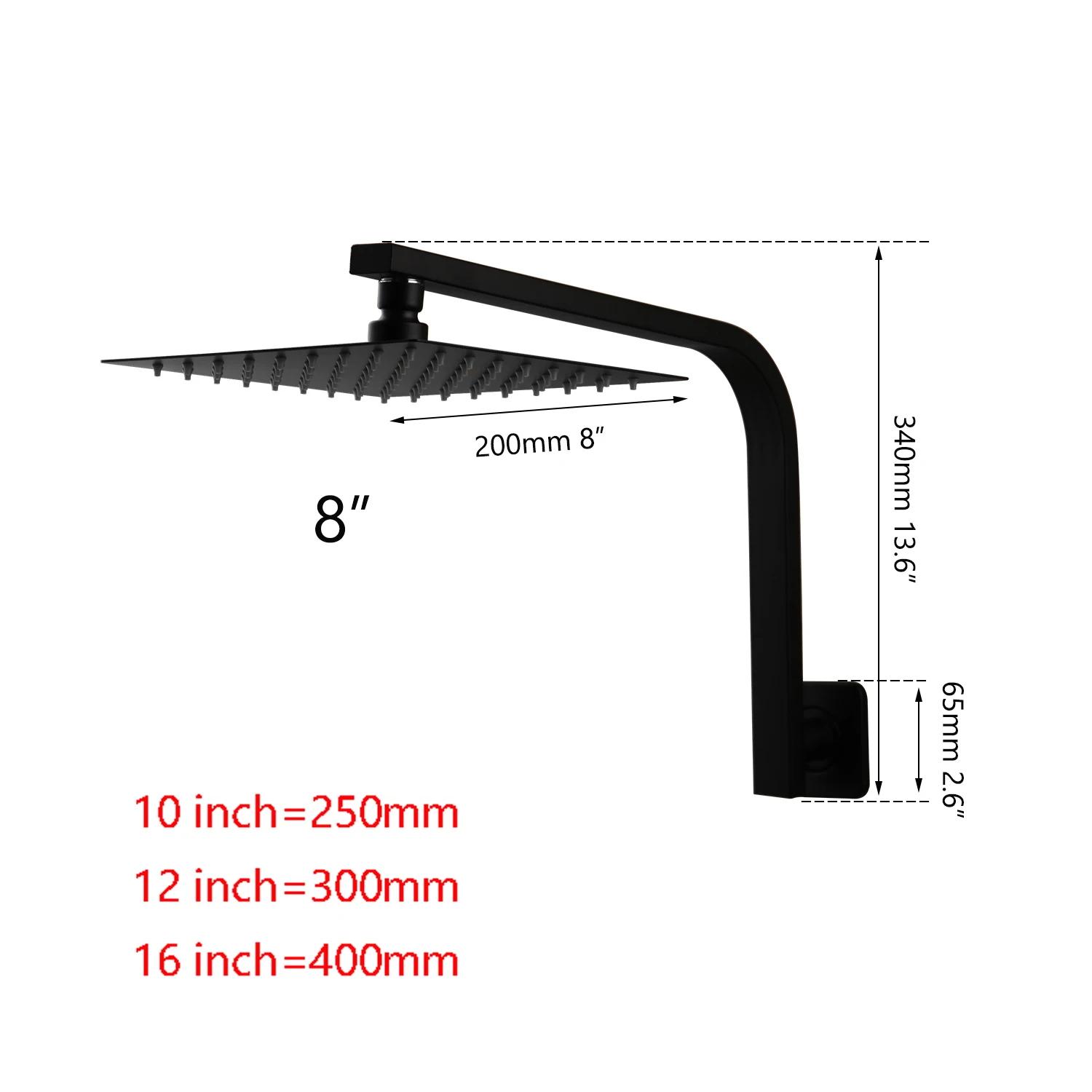 KEMAIDI нержавеющая сталь черная квадратная душевая головка ультратонкая 2 мм 8 10 12 16 дюймов выбор ванная комната настенный душевой рычаг