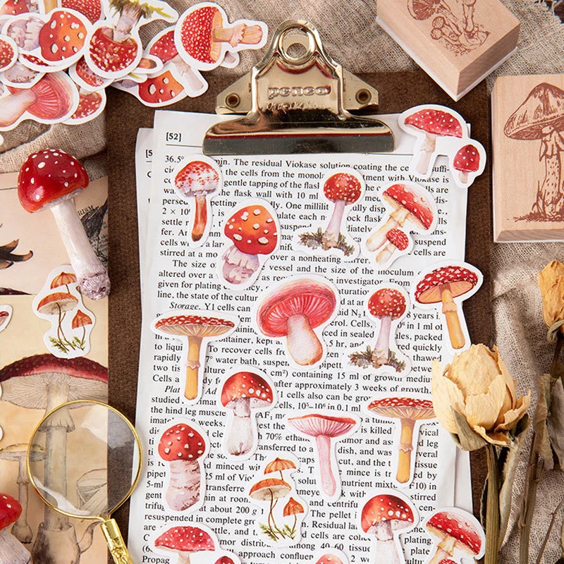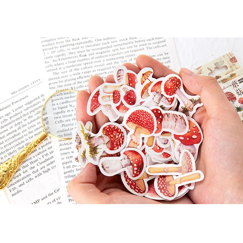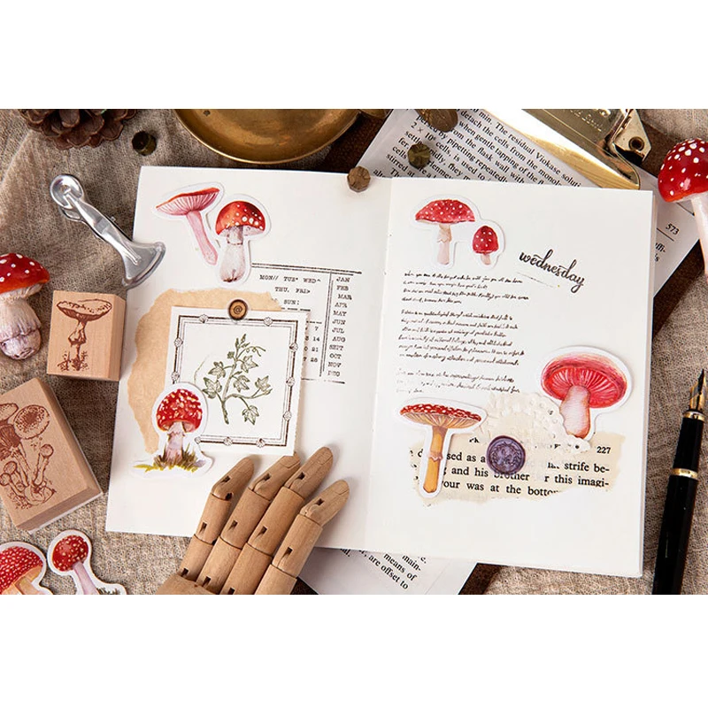 Коллекция грибов, 45 шт., в коробке, наклейки, винтажные наклейки, украшения сделай сам, самоклеящиеся наклейки для скрапбукинга, Товары для офиса и школы