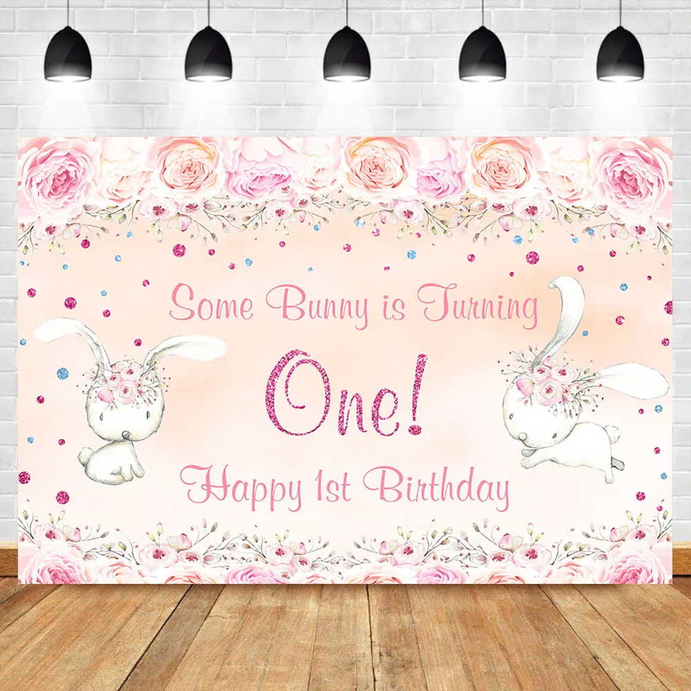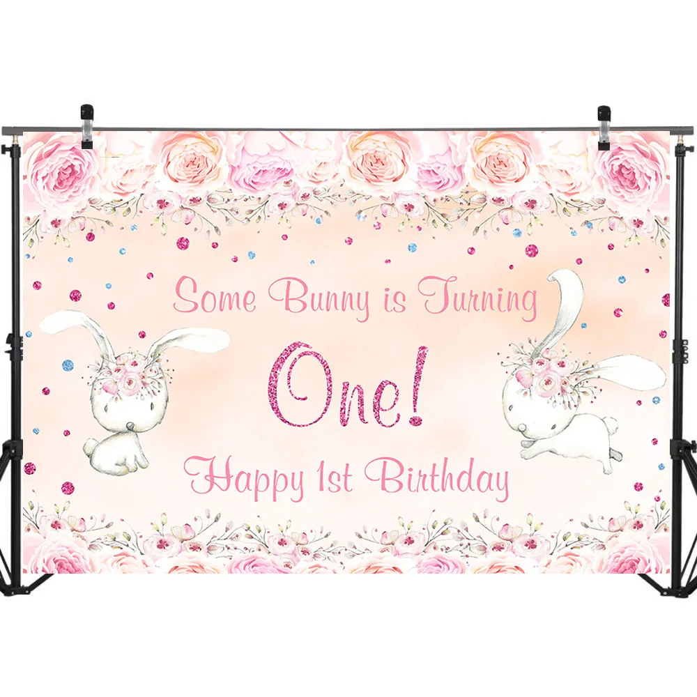 Фон для фотосъемки с изображением симпатичных животных, 1 день рождения, 1 день рождения, розовый цветок, реквизиты-украшения