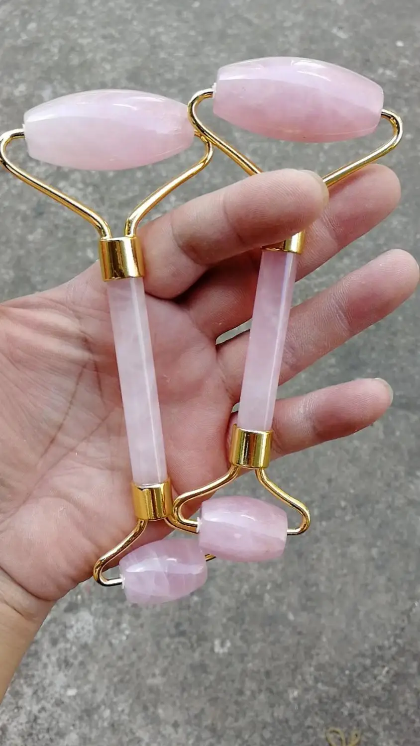 Роликовый набор из розовый кристаллический камень нефрита, 1 шт., массаж подтяжка лица, роликовый лицевой, массажер для похудения, натуральный кварцевый камень, инструмент для массажа шеи