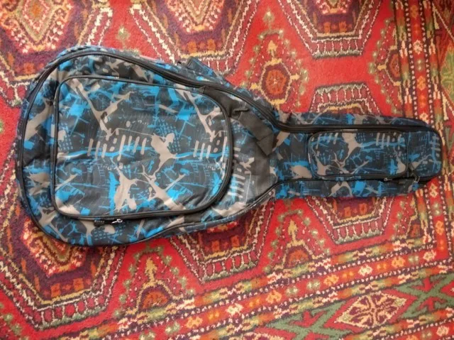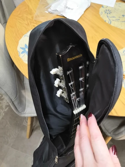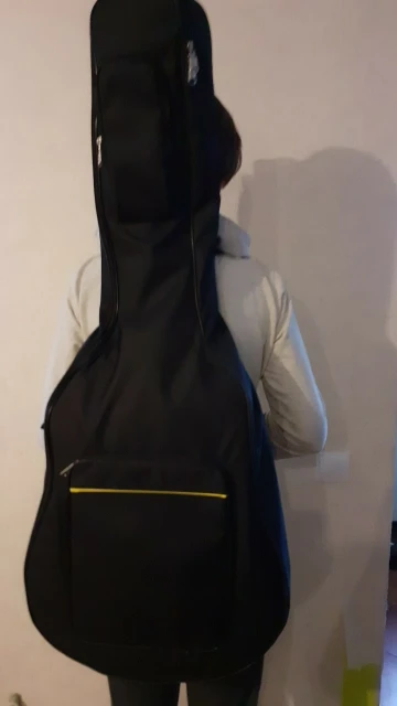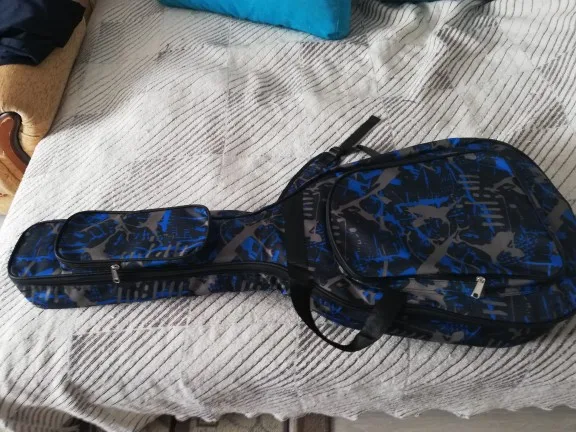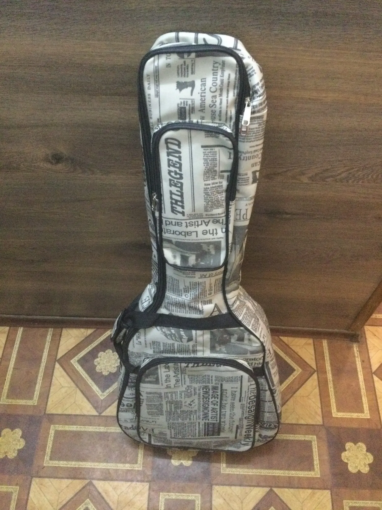 Товаром очень довольна, пришел за 2 месяца в Казахстан. Ткань плотная, непромокаемая. Гитара плотно находится в чехле, гриф крепится к чехлу ремешком на липучке, есть два кармана для доп. аксессуаров. Можно нести в руках или одеть как рюкзак. Качество за свою цену отличное.