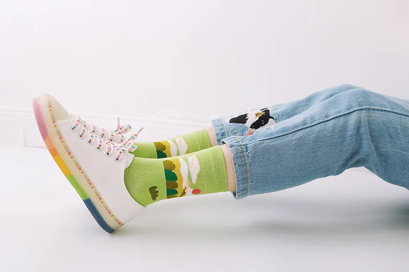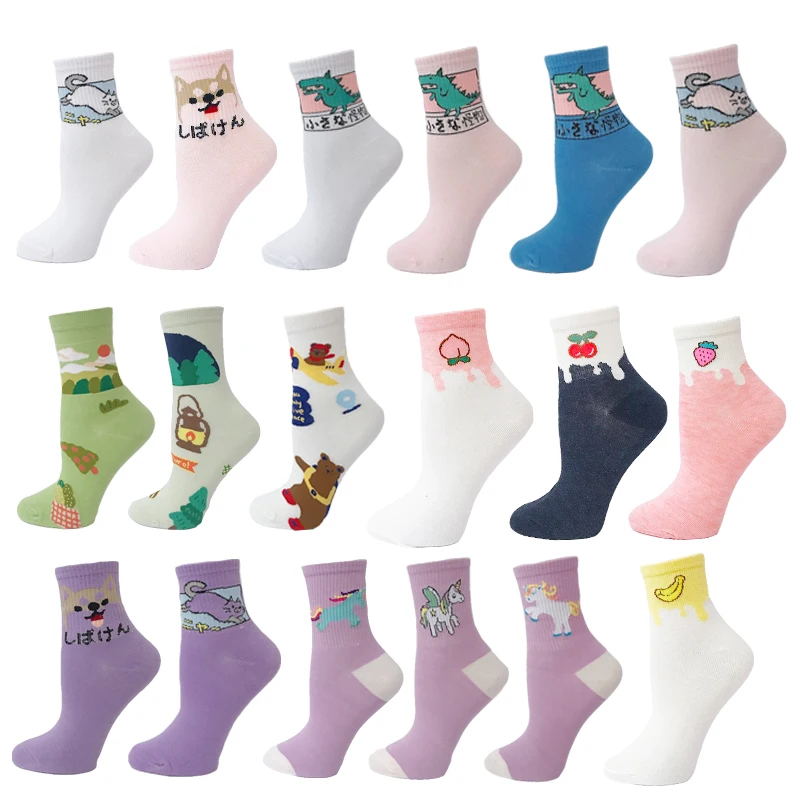 Женские красочные носки VPM Kawaii, новинка, милые Мультяшные забавные японские клубники, молока, единорога, динозавра, розовый кот, носки для девочек, подарки