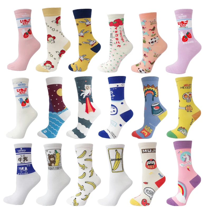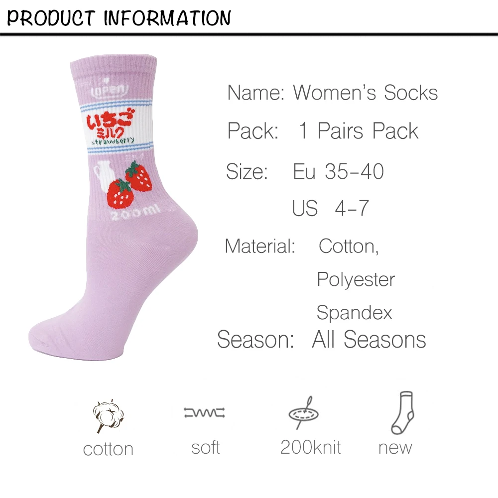 Женские хлопковые носки VPM в стиле Харадзюку, Цветные Милые Мультяшные забавные носки с клубничкой, единорогом, черепом, для девочек, подарки