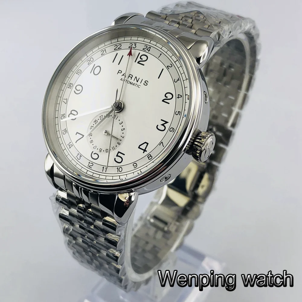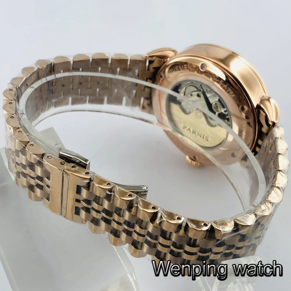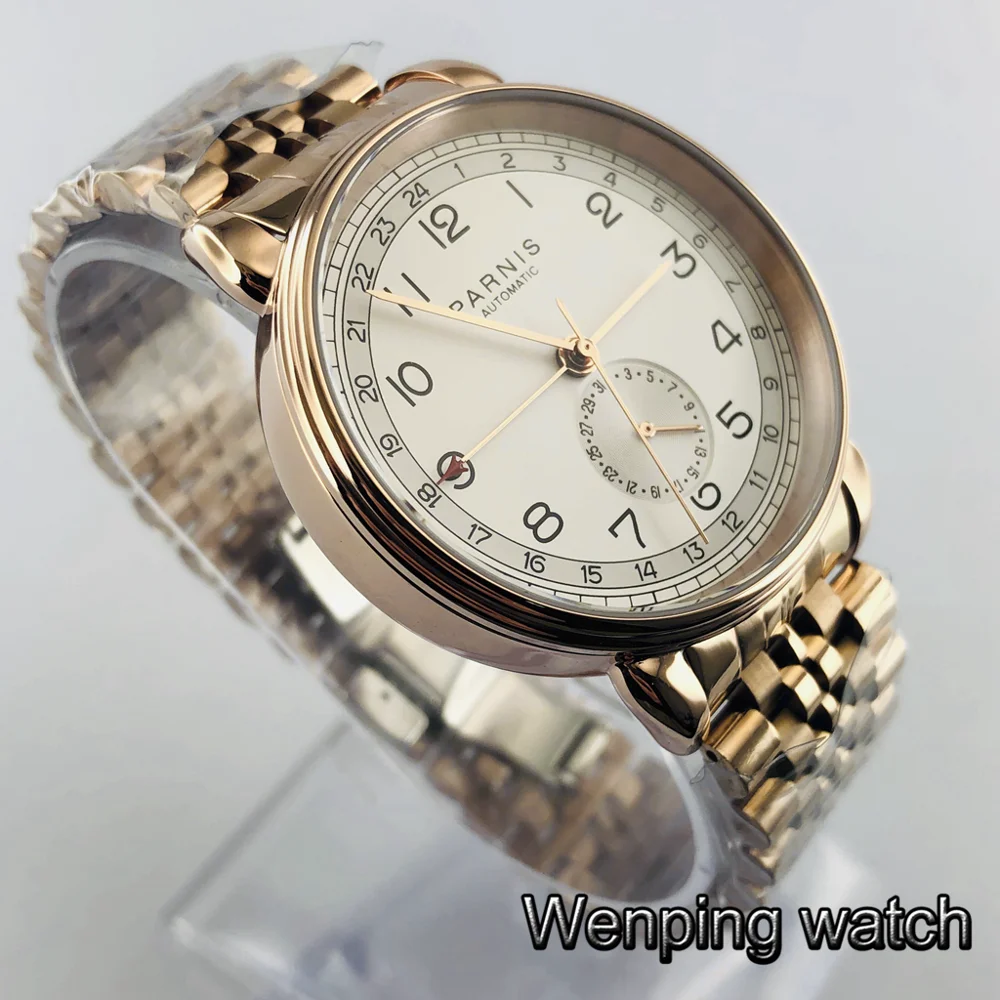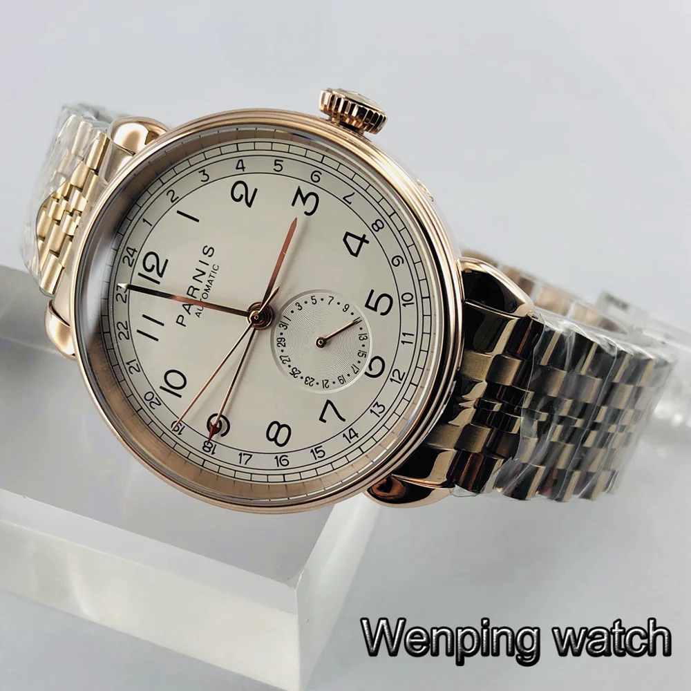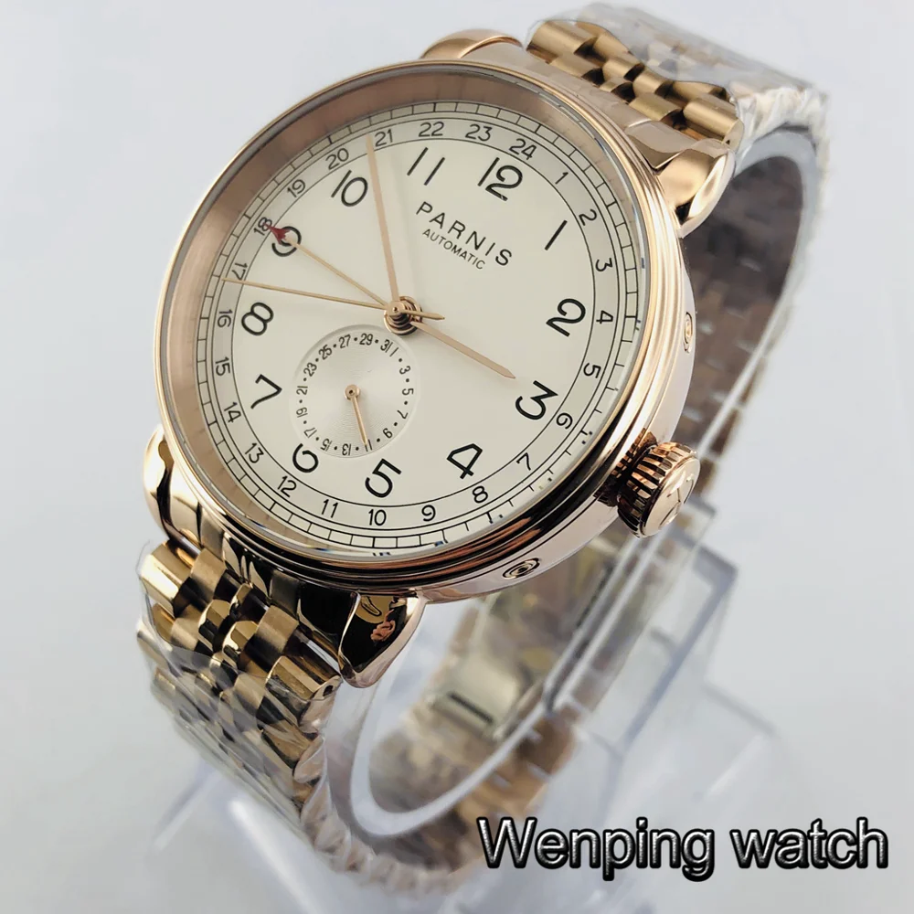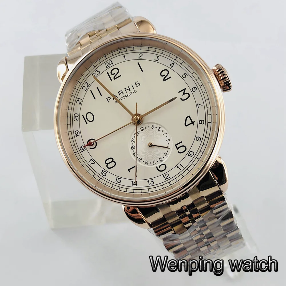 Мужские автоматические механические часы Parnis, розовое золото 42 мм, чехол GMT, Арабская марка, окно, твердая нержавеющая сталь