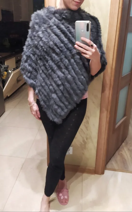 rabbit ponchoHandmade Knitted Rabbit Fur Poncho