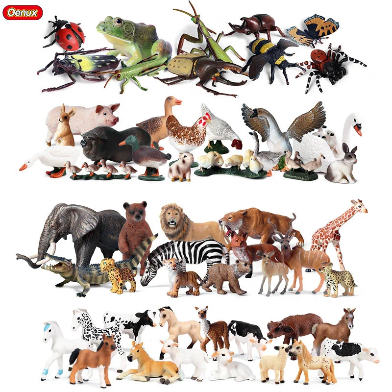 Характеристика:Набор зоопарка Oenux, симуляция животных, дикого льва, тигра, насекомых, фигурки, ферма, птица, лошадь, корова, свинья, фигурки, модель, обучающая игрушка