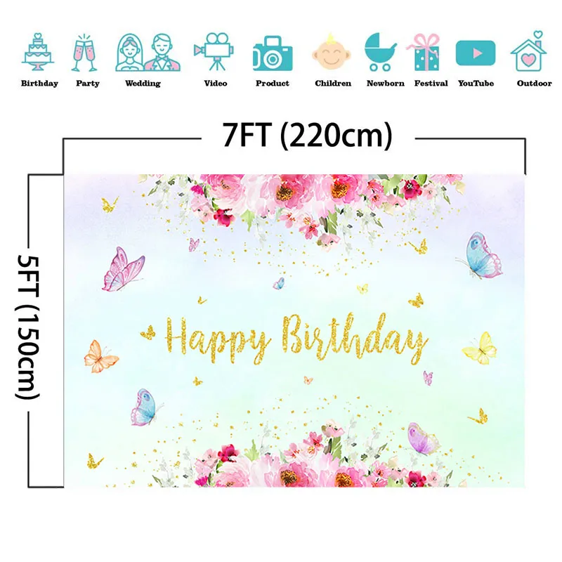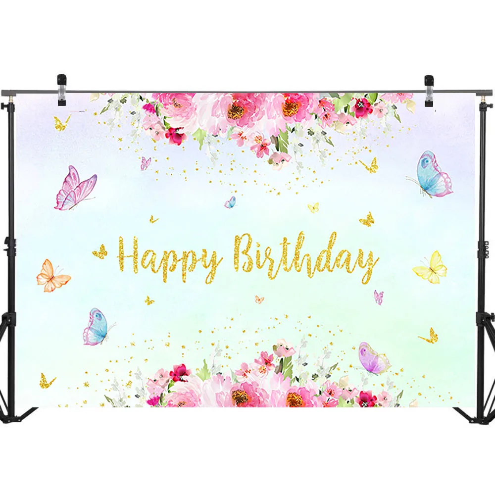 Mocsicka детский фон для фотосъемки на день рождения розовая Акварель цветок фон Бабочка девушка десерт стол искусство