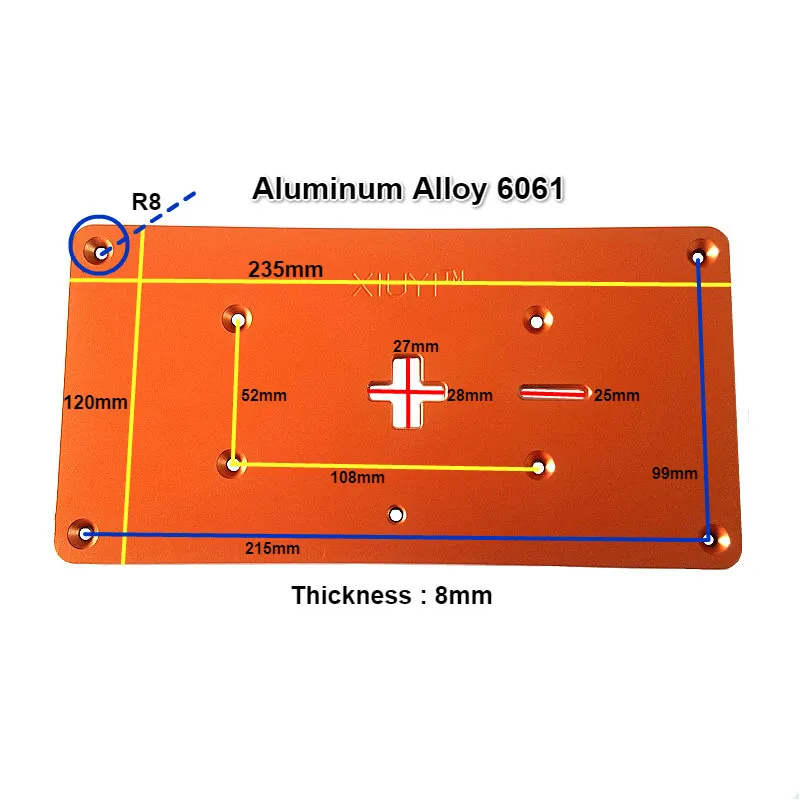 Вставная пластина из алюминиевого фрезерного стола с крепежными винтами для скамейки по дереву. Спецификация:Материал: пластина из алюминиевого сплава + пластиковые кольцаЦвет: золотисто-красныйРазмер: 235*120*8 ммРасстояние между внешними отверстиями: 52*108 ммКоличество: 1 комплект Особенности:Набор настольных инструментов для деревообработки включает 1 вставную пластину для фрезерного стола и некоторые крепежные винты.Изготовлен из алюминиевого сплава, прочен в использовании и не ржавеет.Удобная Втулка с центральным отверстием, используемая для выравнивания маршрутизатора, поэтому она находится по центру в отверстии для бита.Аккуратно сверлите и Установите любой роутер.Он прост в использовании и делает работу хорошо выполненной. Примечание:1. Возможны отклонения на 0,1-0,5 см из-за ручного измерения.2. Цвет фактического товара может немного отличаться от цвета на изображениях из-за разных экранов компьютера. Спасибо за понимание.3. Инструкция в комплект не входит. Посылка:1 х вставная пластина для фрезерного стола1 х Набор крепежных винтов Подробнее: