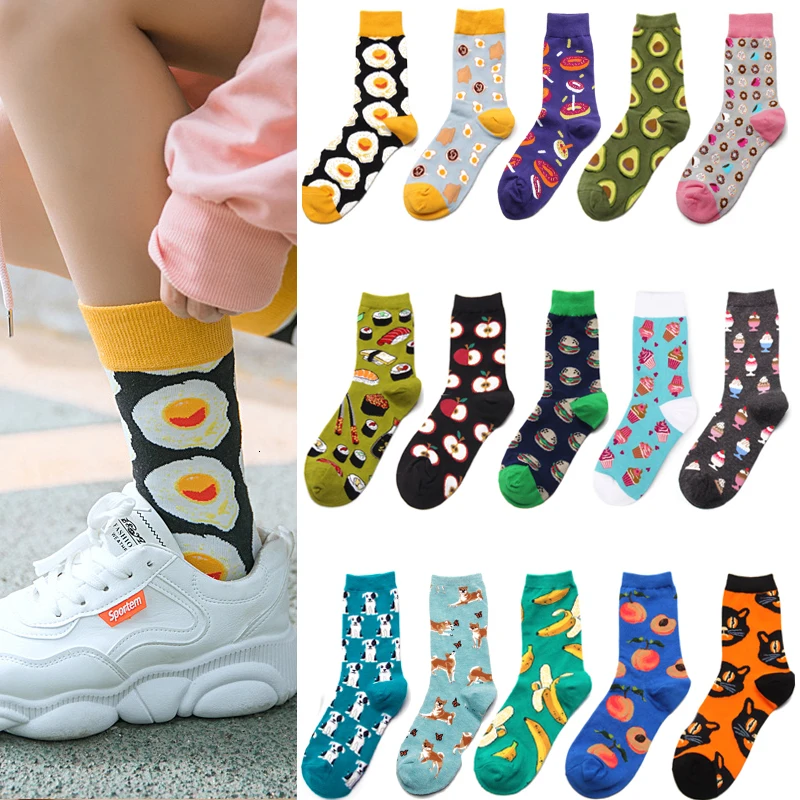 Новинка 2020, женские носки, забавные, авокадо, омлет, бургер, фрукты, еда, носки, повседневные, чесаные, хлопковые носки, женские, счастливые носки, женские