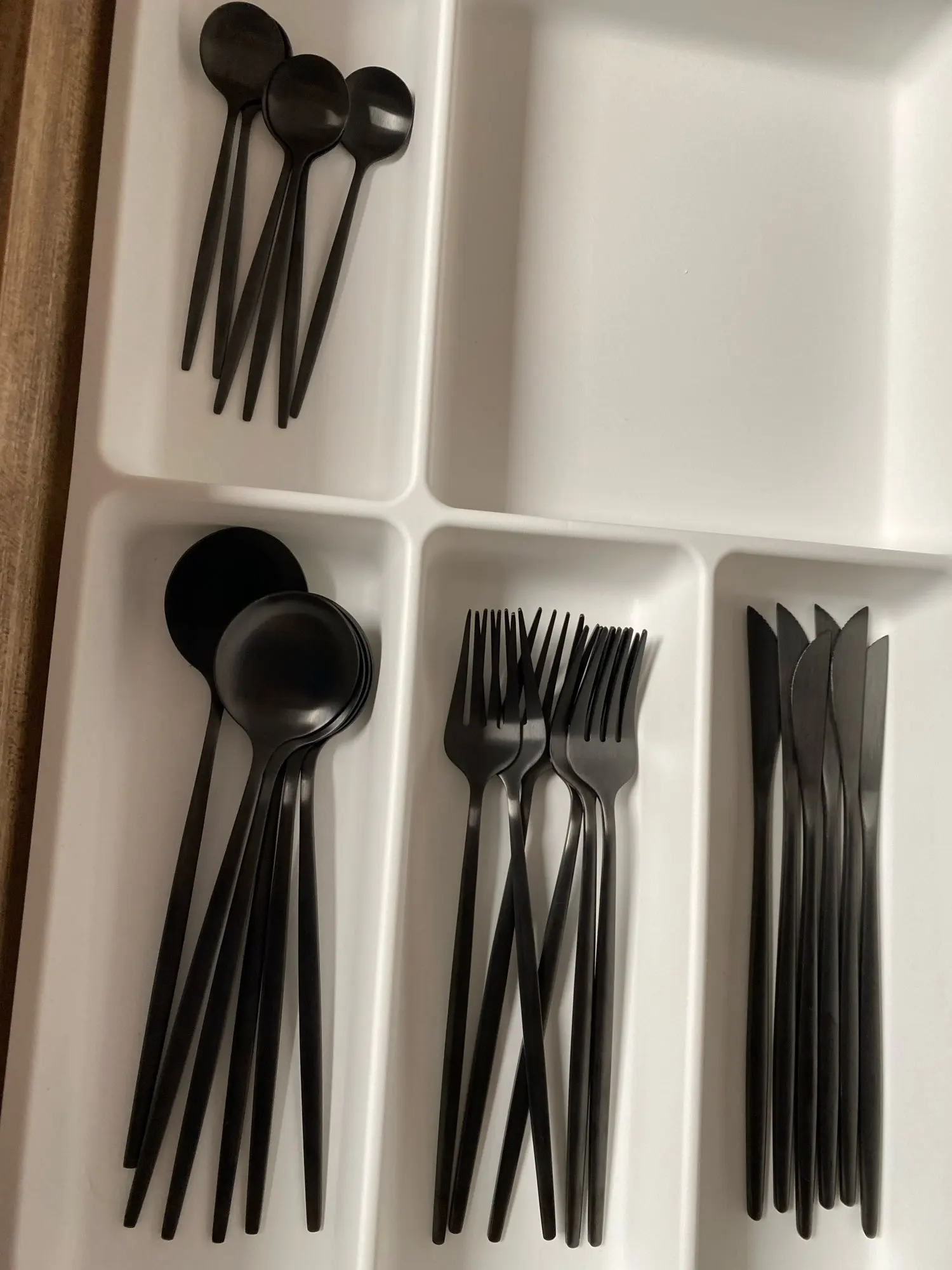 Приехали быстро, посуда из нержавейки выкрашена чёрным матом, дизайн интересный. моем в посудомойке, посмотрим на сколько хватит