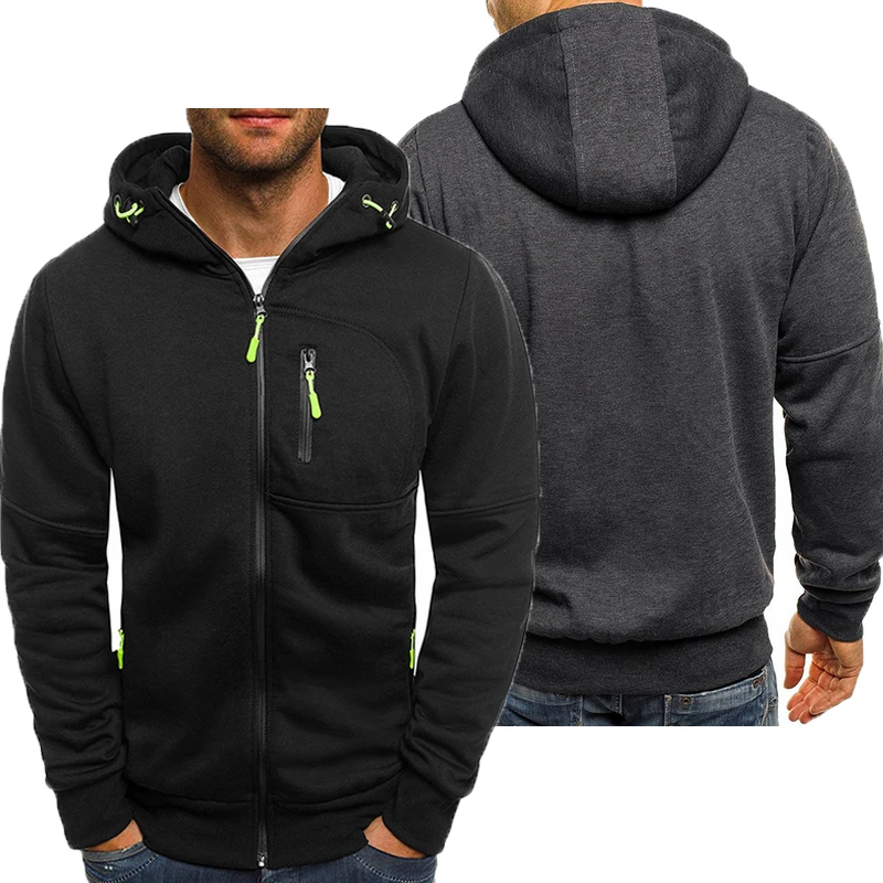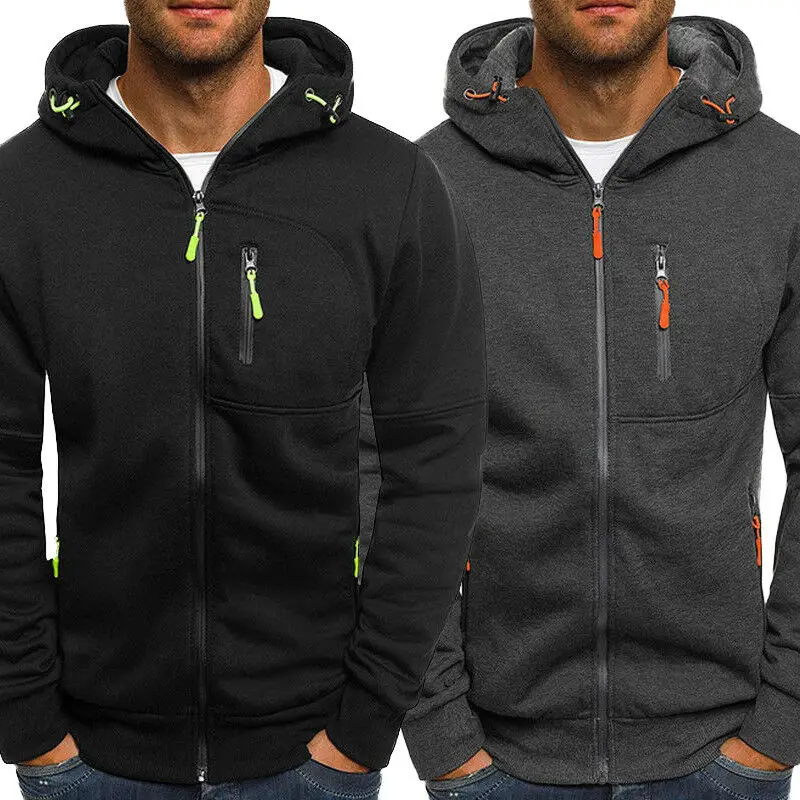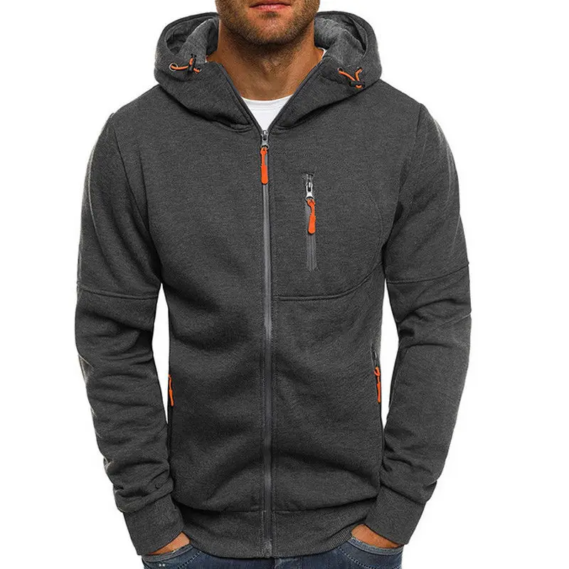 Новинка 2019, сераячерная толстовка, Мужская Осенняя толстовка на молнии, худи, куртка, свитшот, повседневные куртки с капюшоном для спортзала, верхняя одежда