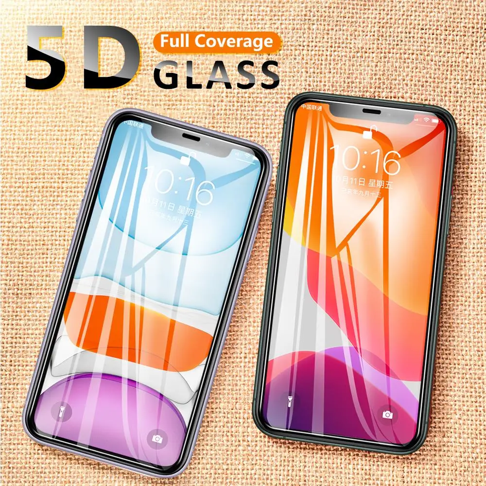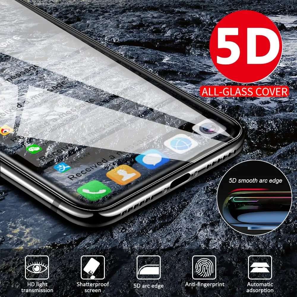 Закаленное стекло 5D для iPhone 11 Pro, XS Max, XR, X, 8, 7, 6, 6S Plus, полное покрытие, защитная пленка для экрана, PK 3D, 4D