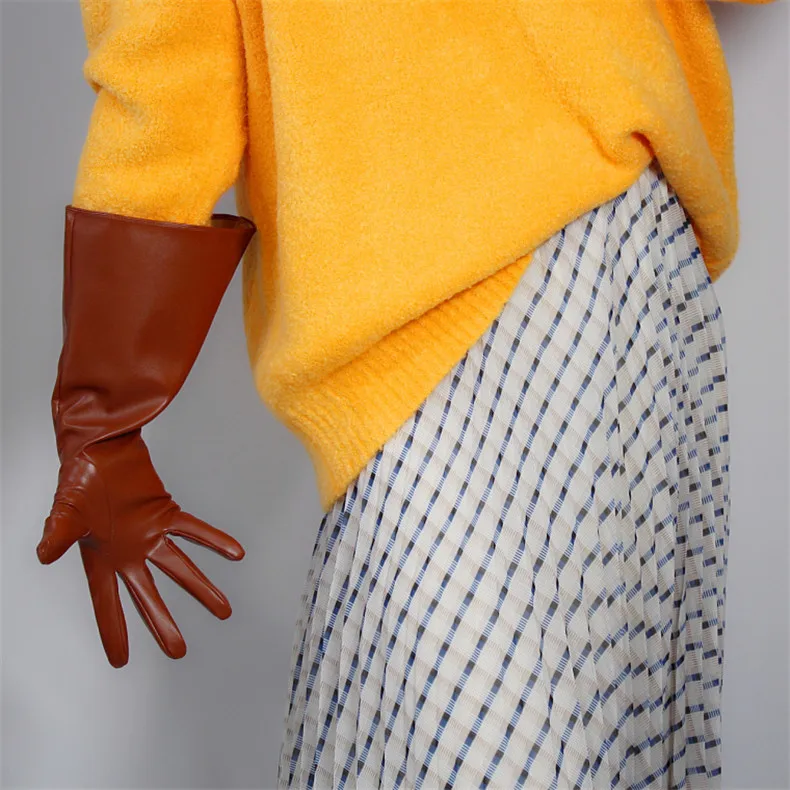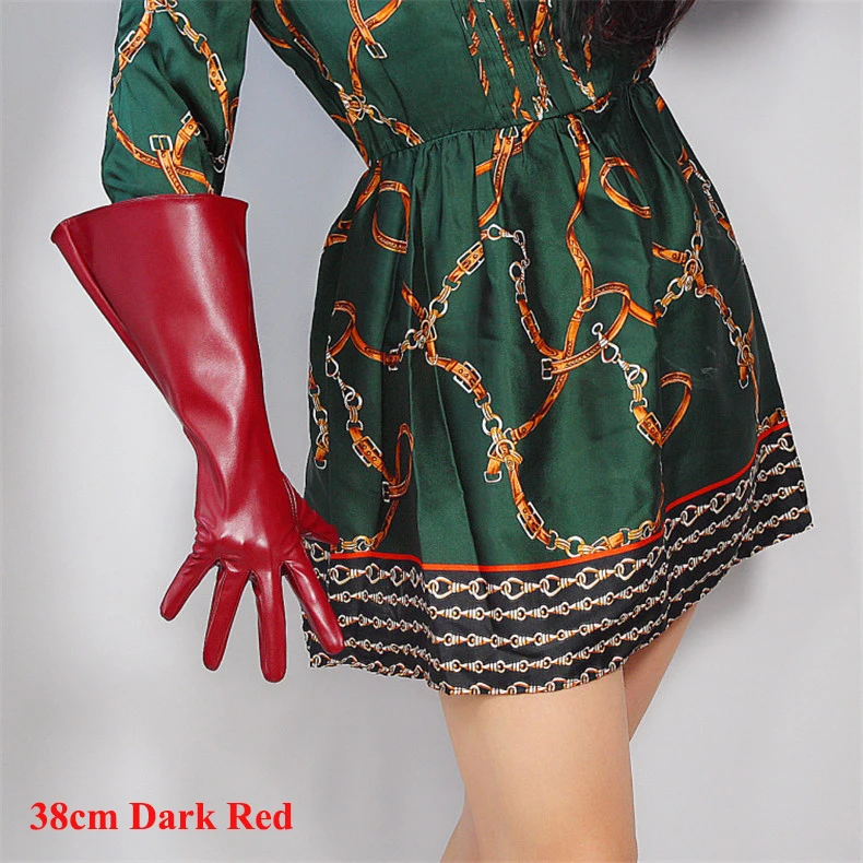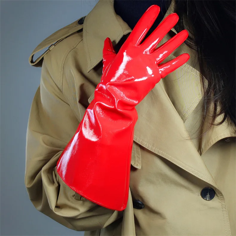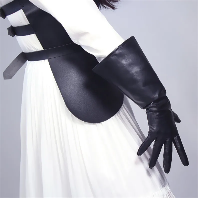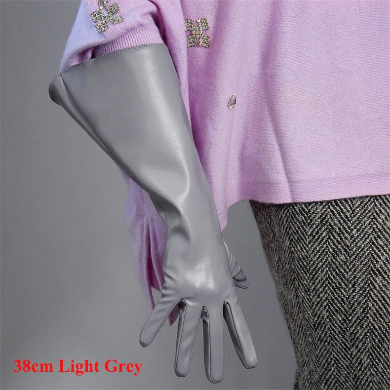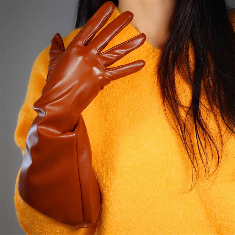 Длинные перчатки для сенсорных экранов 38 см с широкими манжетами и рукавами-фонариками, черные перчатки из искусственной кожи для мужчин и женщин WPU134