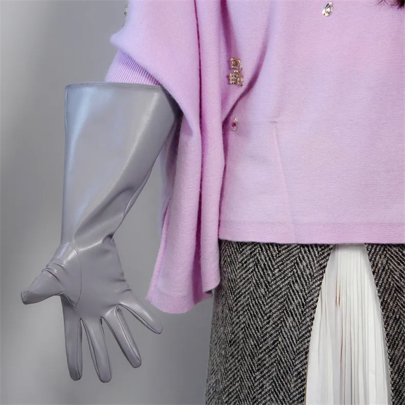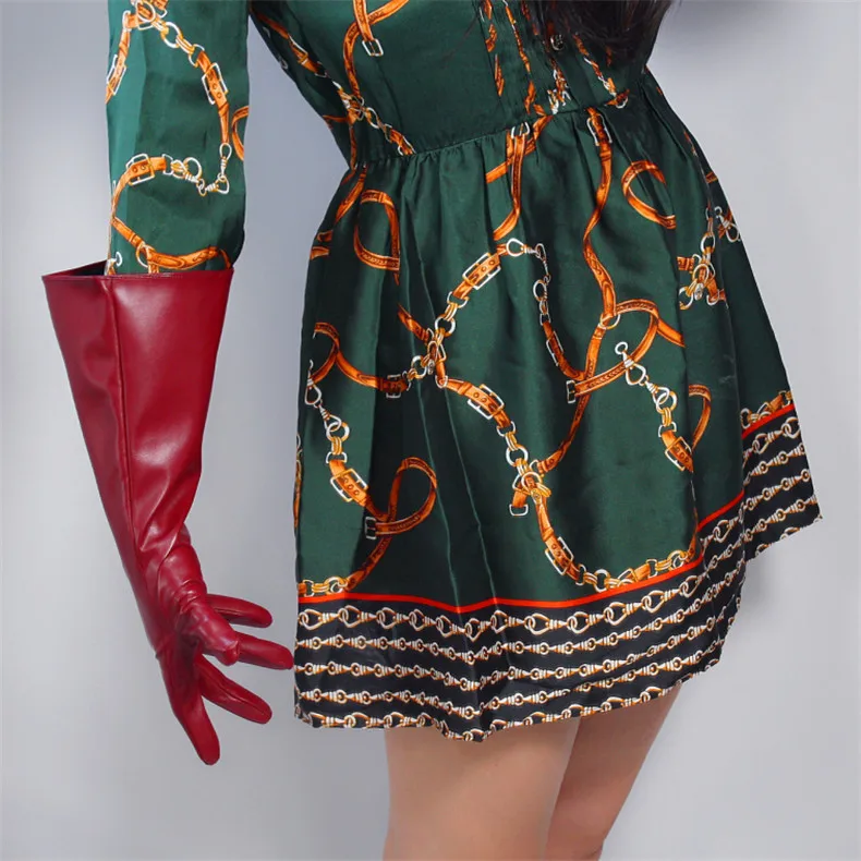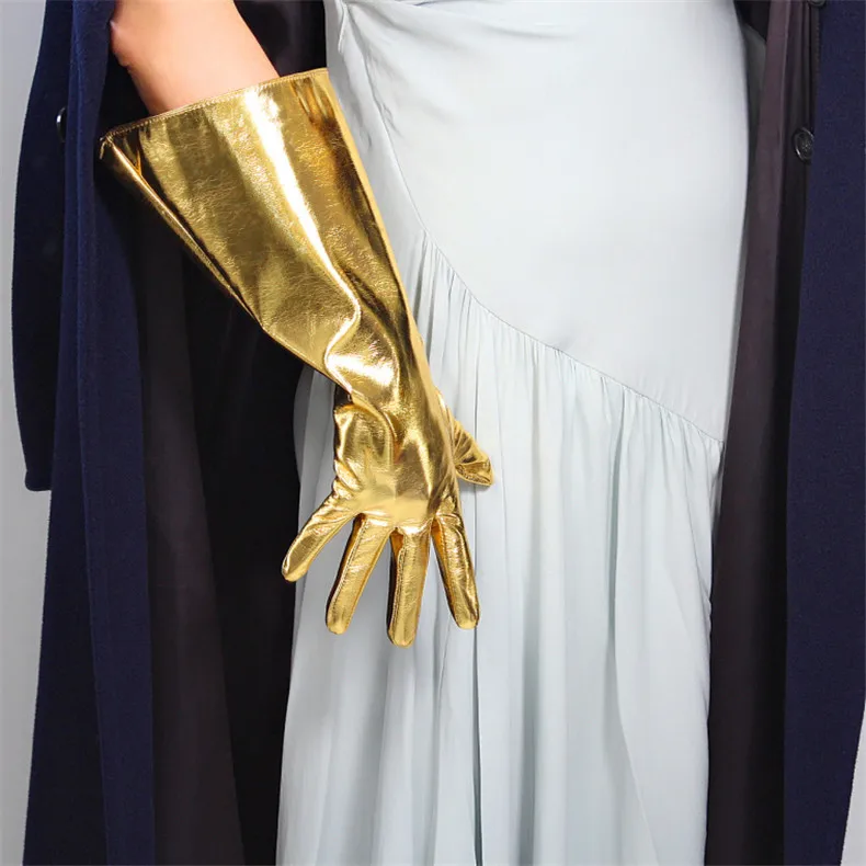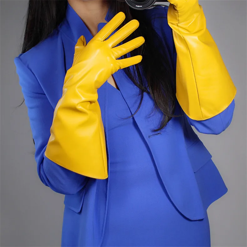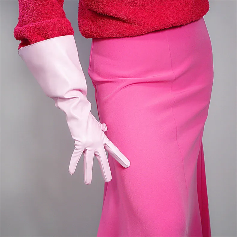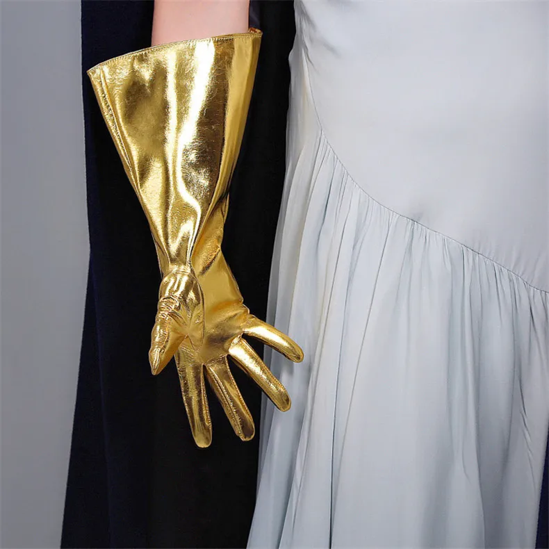 Длинные перчатки для сенсорных экранов 38 см с широкими манжетами и рукавами-фонариками, черные перчатки из искусственной кожи для мужчин и женщин WPU134