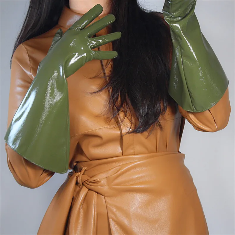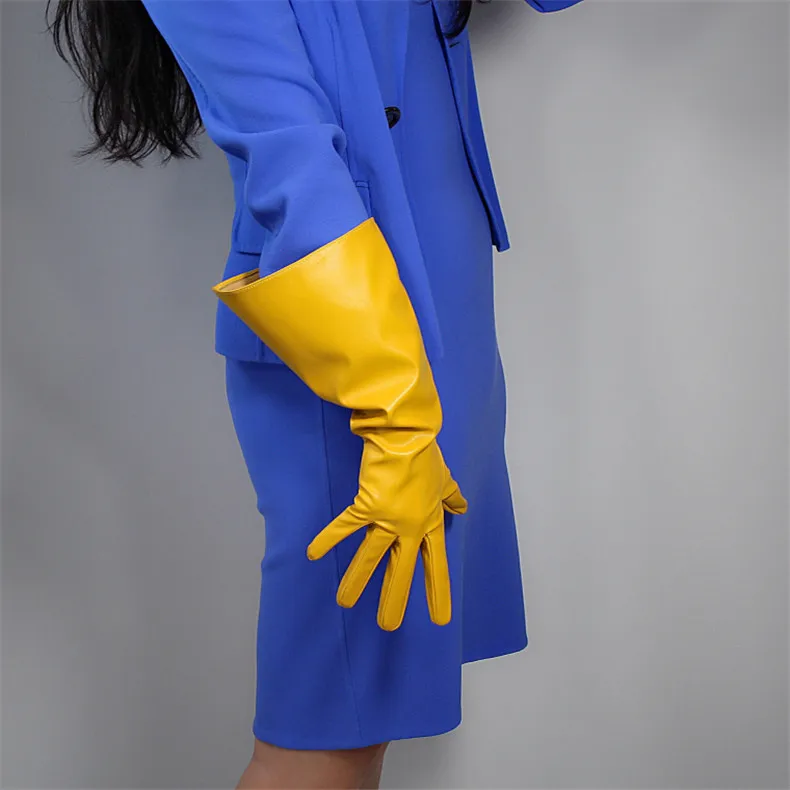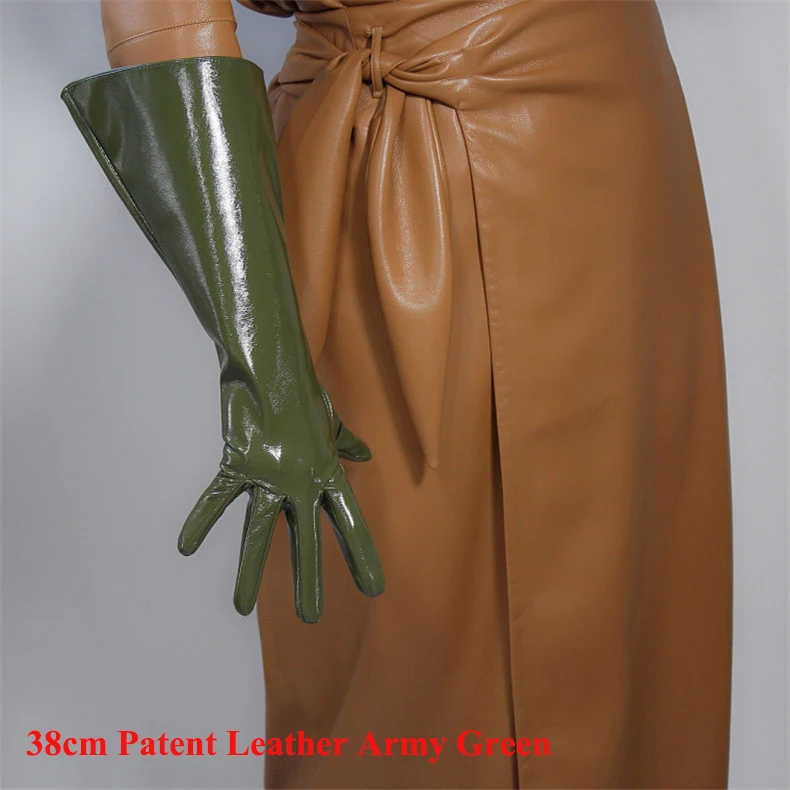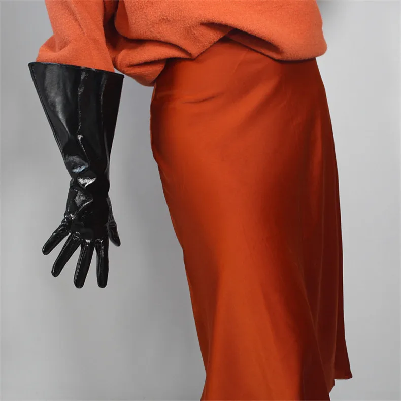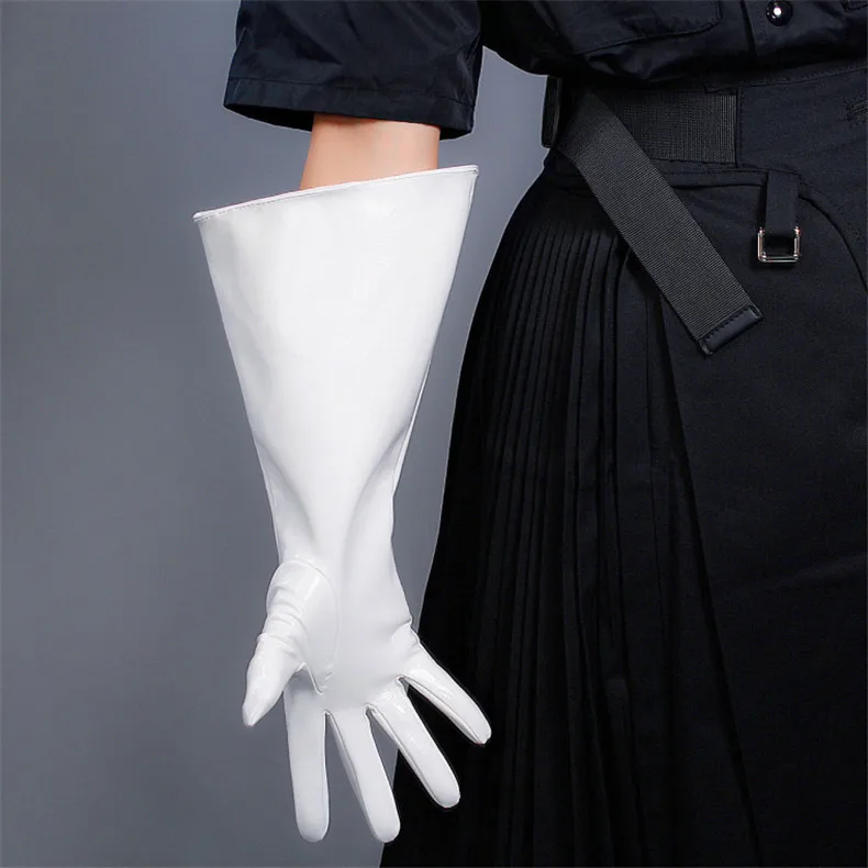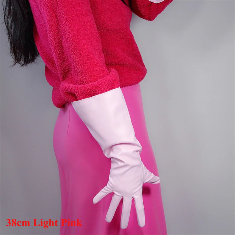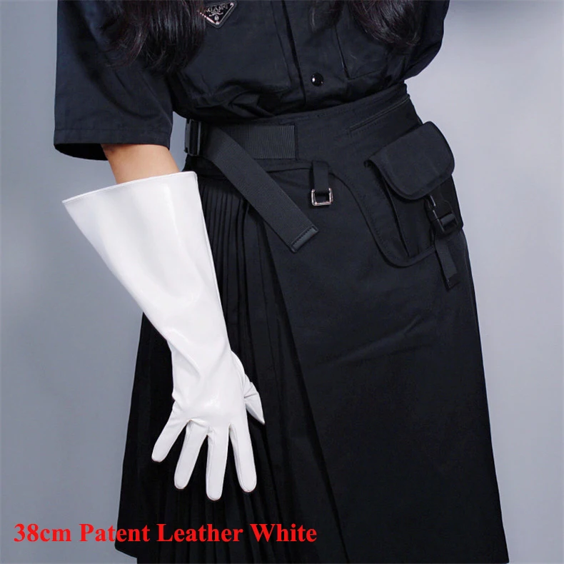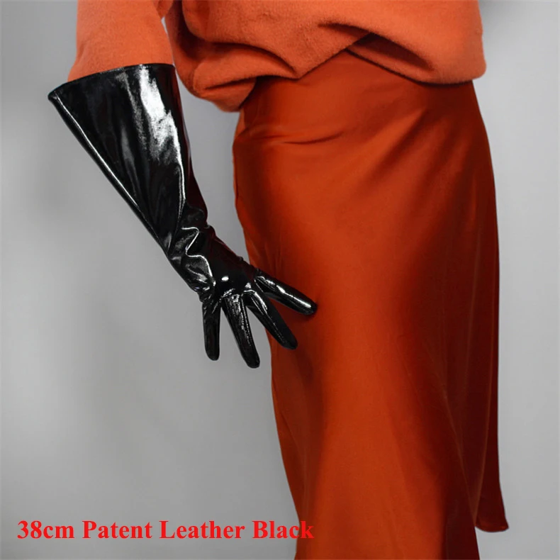 Длинные перчатки для сенсорных экранов 38 см, широкая манжета, рукава-фонарики из искусственной кожи, черные, для мужчин и женщин, WPU134