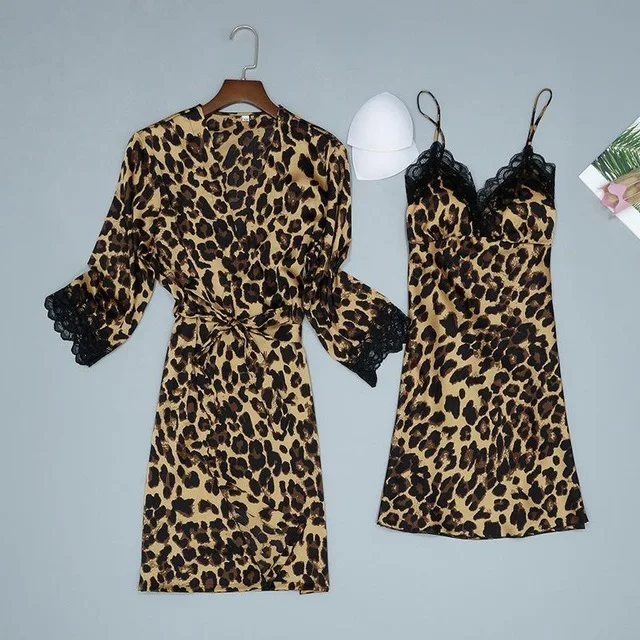 Халат-кимоно Женский мягкий Ночная сорочка с леопардовым принтом, пикантная ночная рубашка, свободный халат, домашняя одежда