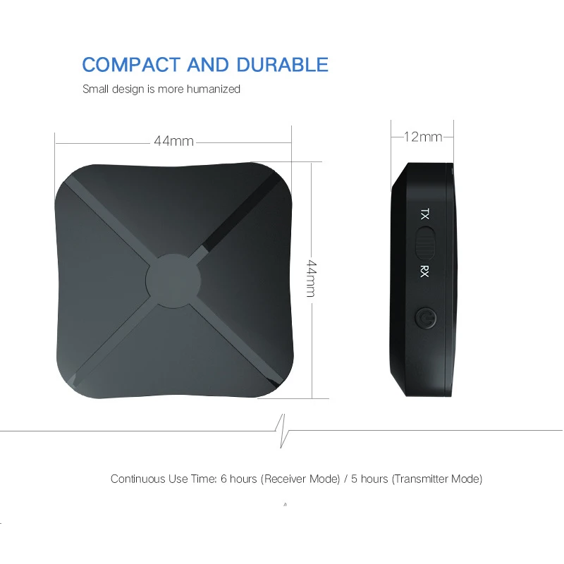 4. Переключитесь между режимами передатчика и приемника простым щелчком переключателя. Легко подключается с помощью передовой технологии Bluetooth и аудиокабеля 3,5 мм (входит в комплект).