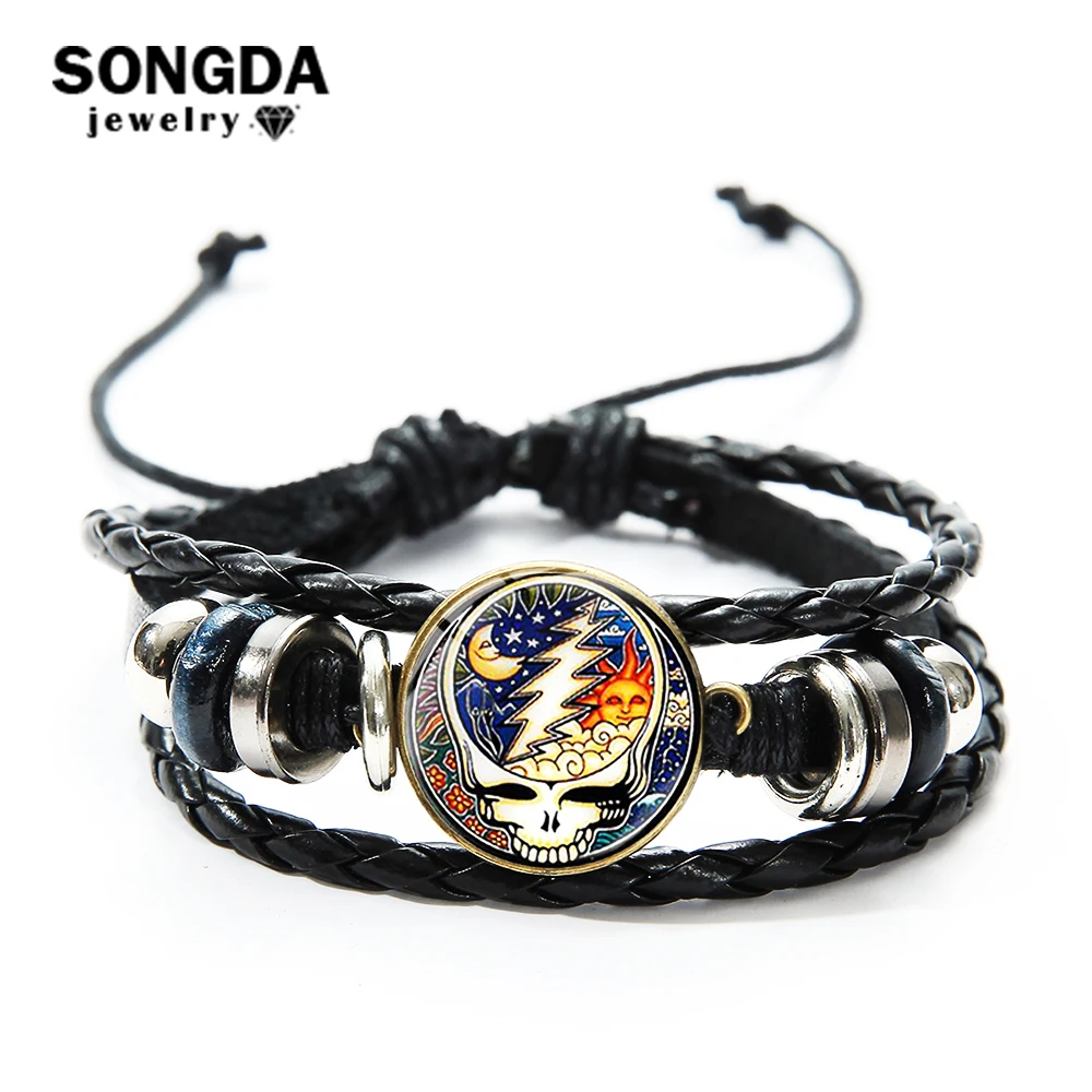 SONGDA Винтаж 1960s Grateful печатных браслет деревянные бусины Многослойные и кожаным ремешком Мужские часы наручные аксессуары