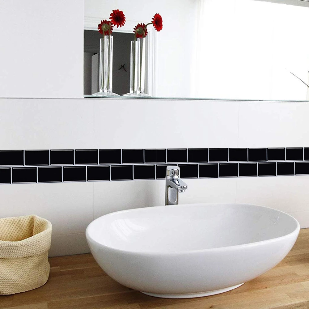Яркие плитки классические черные обои, водонепроницаемый кухонный Декор Наклейка кирпич 3D виниловая оболочка и клей настенная плитка
