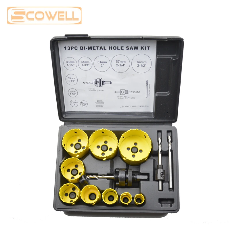 30% скидка 13 шт., набор биметаллических коронок из быстрорежущей стали с диаметром 19 мм до 64 мм, для сверления отверстий по дереву и металлу